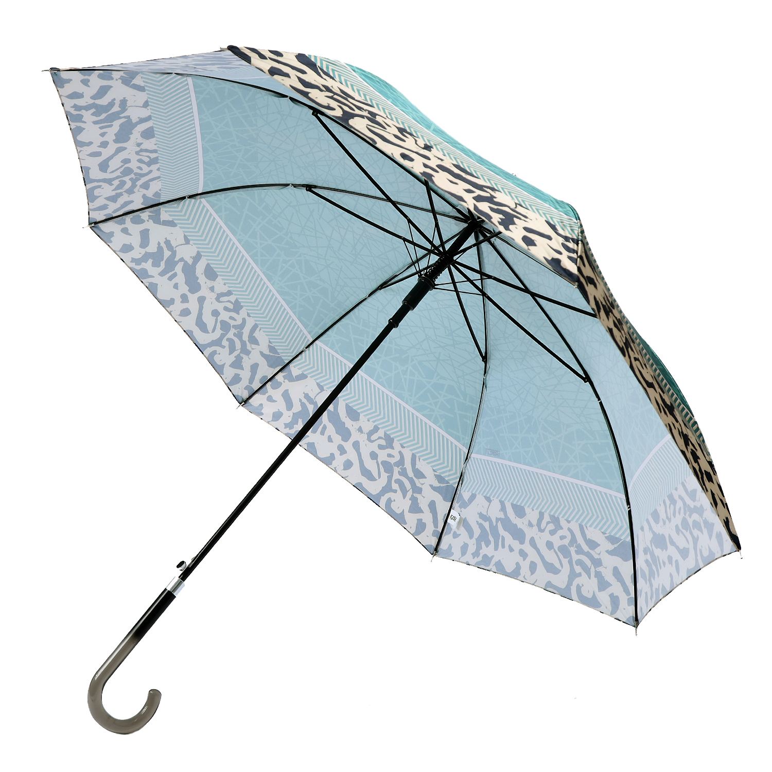 Купол женского зонта-трости FABRETTI выполнен из полиэстера с приятной гладкой фактурой и сатиновым блеском. Верх — в зеленом цвете, дополнена геометрическим узором. Конструкция зонта изготовлена из прочной стали, эргономичная ручка, образующая изящный крюк, - из прозрачного пластика. Механизм модели - полуавтомат: открытие зонта кнопкой и закрытие вручную.  На чехле зонта предусмотрены 2 лямки, позволяющие комфортно носить аксессуар в руке или на плечах.