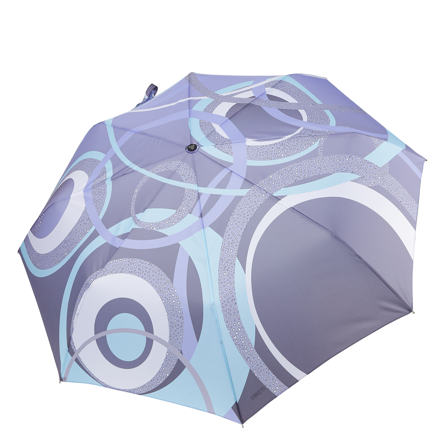 Зонт-автомат FABRETTI выделяется ярким принтом купола, который выполнен из полиэстера с плетением нити - эпонж. Такое плетение помимо матовой фактуры придает ткани высокую прочность и устойчивость к выцветанию. На зонте изображены красивые круги и линии, переплетающиеся между собой. Эргономичная ручка выполнена из пластика. Каркас изготовлен из алюминия. Аксессуар снабжен автоматическим механизмом сложения. Облегченная конструкция создает дополнительный комфорт при использовании зонта. Комплекс пружин и звеньев спиц сделаны из гибкого и упругого материала углепластика и фибергласса и составляют основу системы «антиветер».