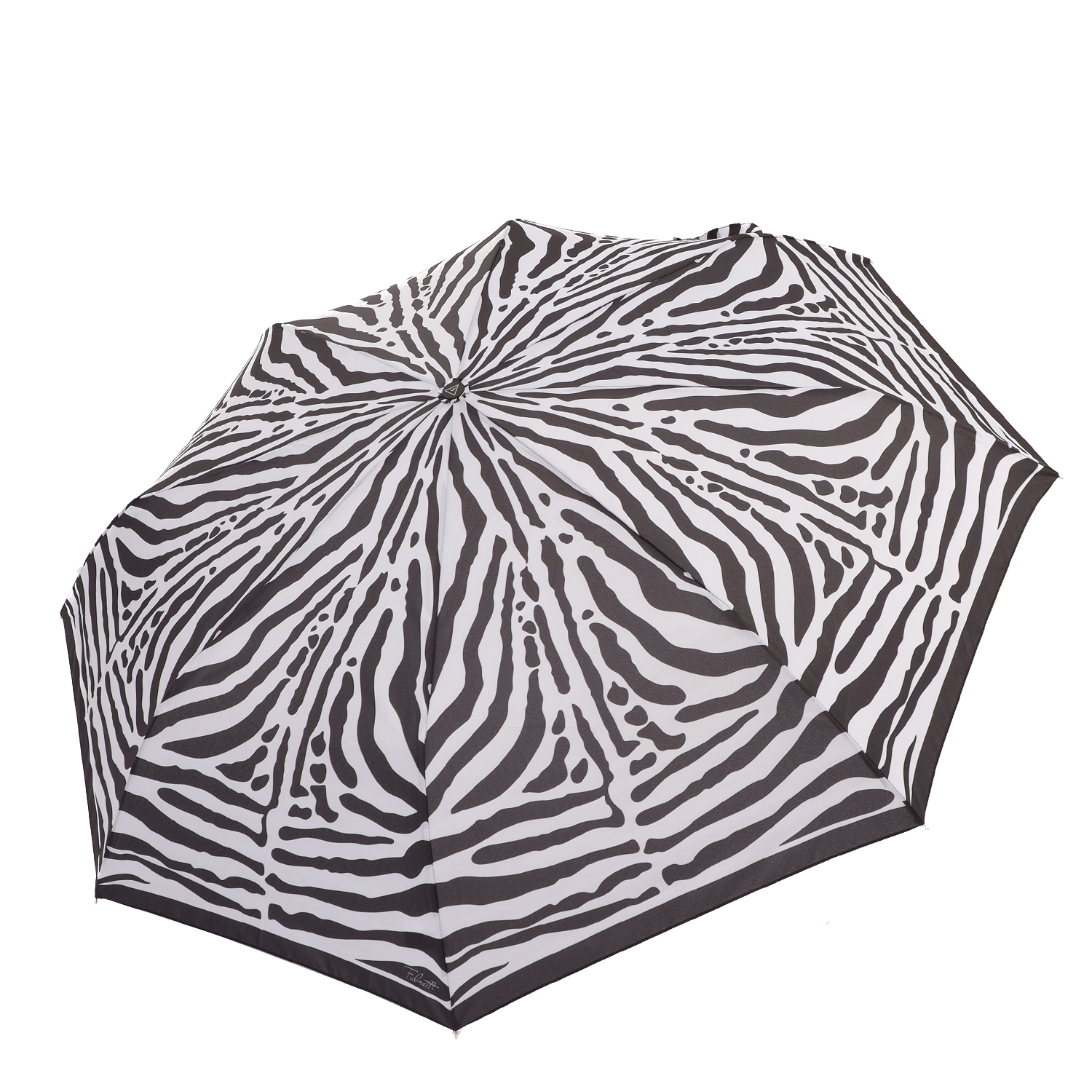 Небольшой женский зонт-автомат итальянского бренда FABRETTI украшенный монохромным черно-белым анималистичным узором «под зебру».