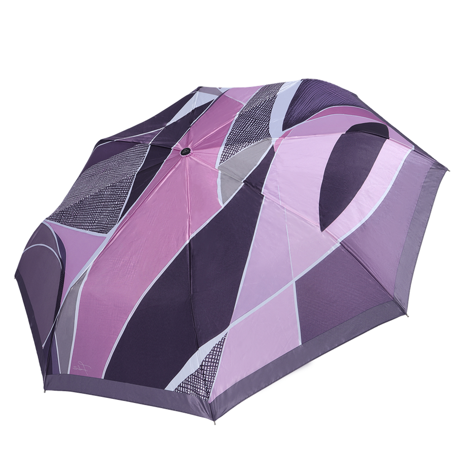 Купол зонта-автомата FABRETTI в фиолетовом оттенке украшен абстрактным принтом,выполнен из полиэстера с приятной гладкой фактурой и сатиновым блеском. Рисунок нанесен с помощью техники цифровой печати, которая обеспечивает долговечность изображению и точность цветопередачи.