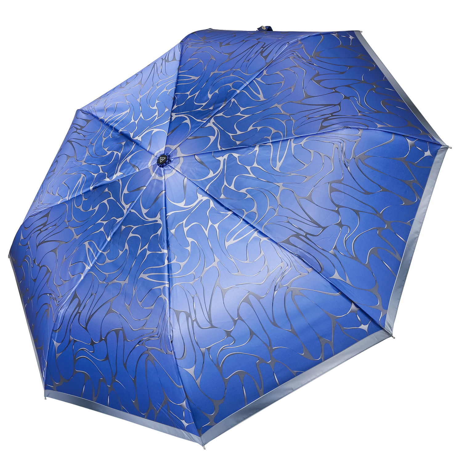 Купол зонта-автомата FABRETTI в сине-серой гамме украшен оригинальным абстрактным принтом. Рисунок нанесен с помощью техники цифровой печати, которая обеспечивает долговечность изображению и точность цветопередачи. Купол выполнен из полиэстера с приятной гладкой фактурой и сатиновым блеском. Вода, попадая на такой купол, превращается в капли и легко скатываться вниз.