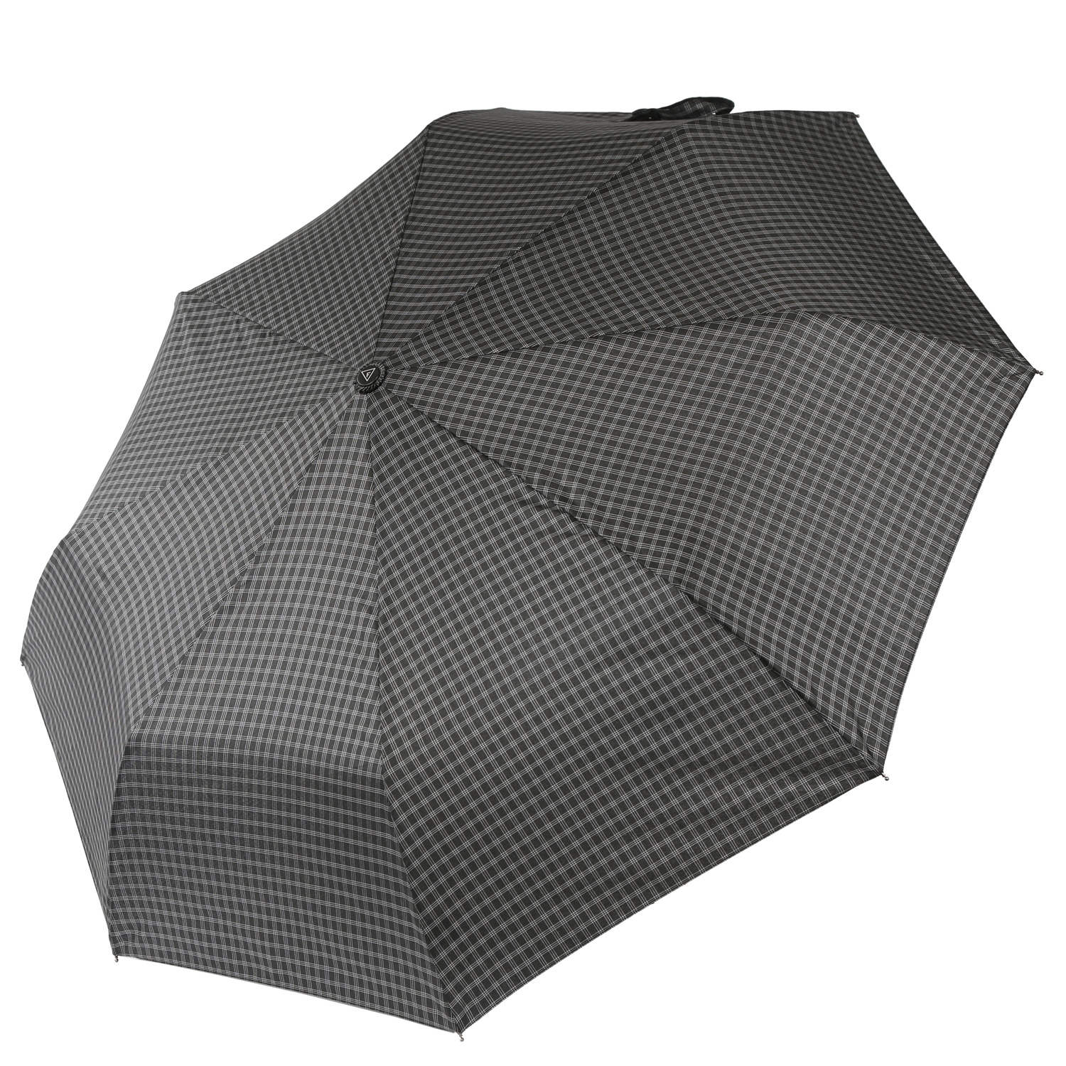 Купол мужского зонта FABRETTI выполнен из прочного водоотталкивающего полиэстера (эпонж) в сером цвете и декорирован принтом «клетка». Вода, попадая на такой купол, превращается в капли и легко скатываться вниз.
