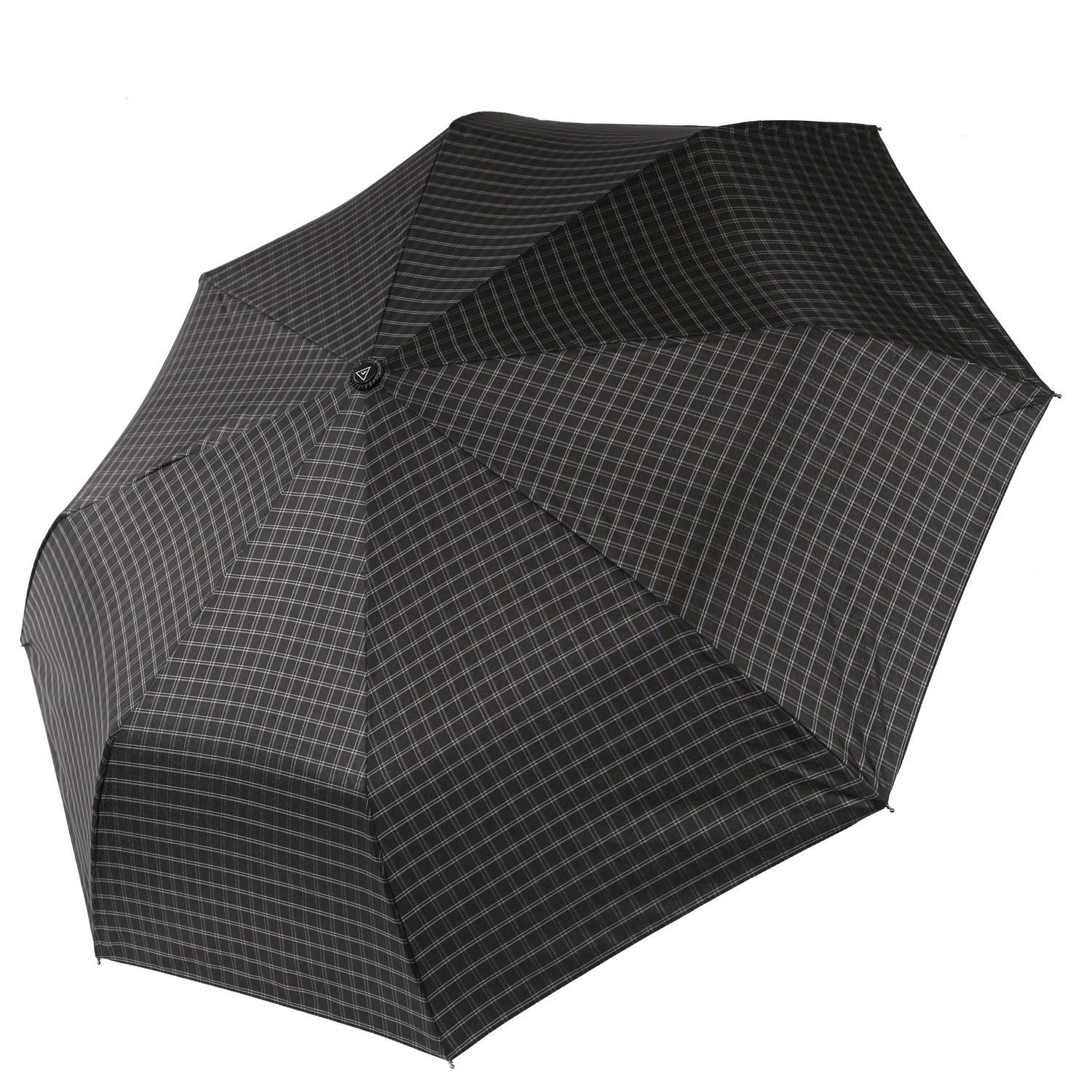 Купол мужского зонта FABRETTI выполнен из прочного водоотталкивающего полиэстера (эпонж) в черном цвете и декорирован принтом «клетка». Вода, попадая на такой купол, превращается в капли и легко скатываться вниз.