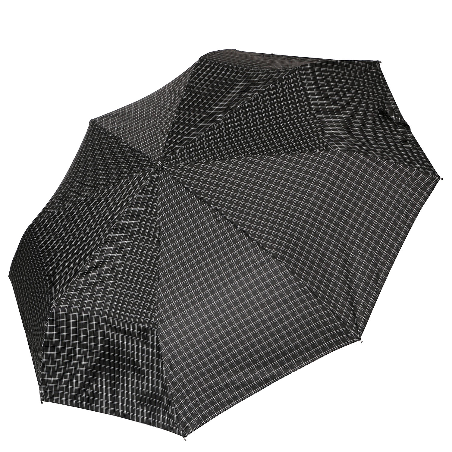 Купол мужского зонта FABRETTI выполнен из прочного водоотталкивающего полиэстера (эпонж) в темно-сером оттенке и декорирован принтом «клетка». Вода, попадая на такой купол, превращается в капли и легко скатываться вниз.