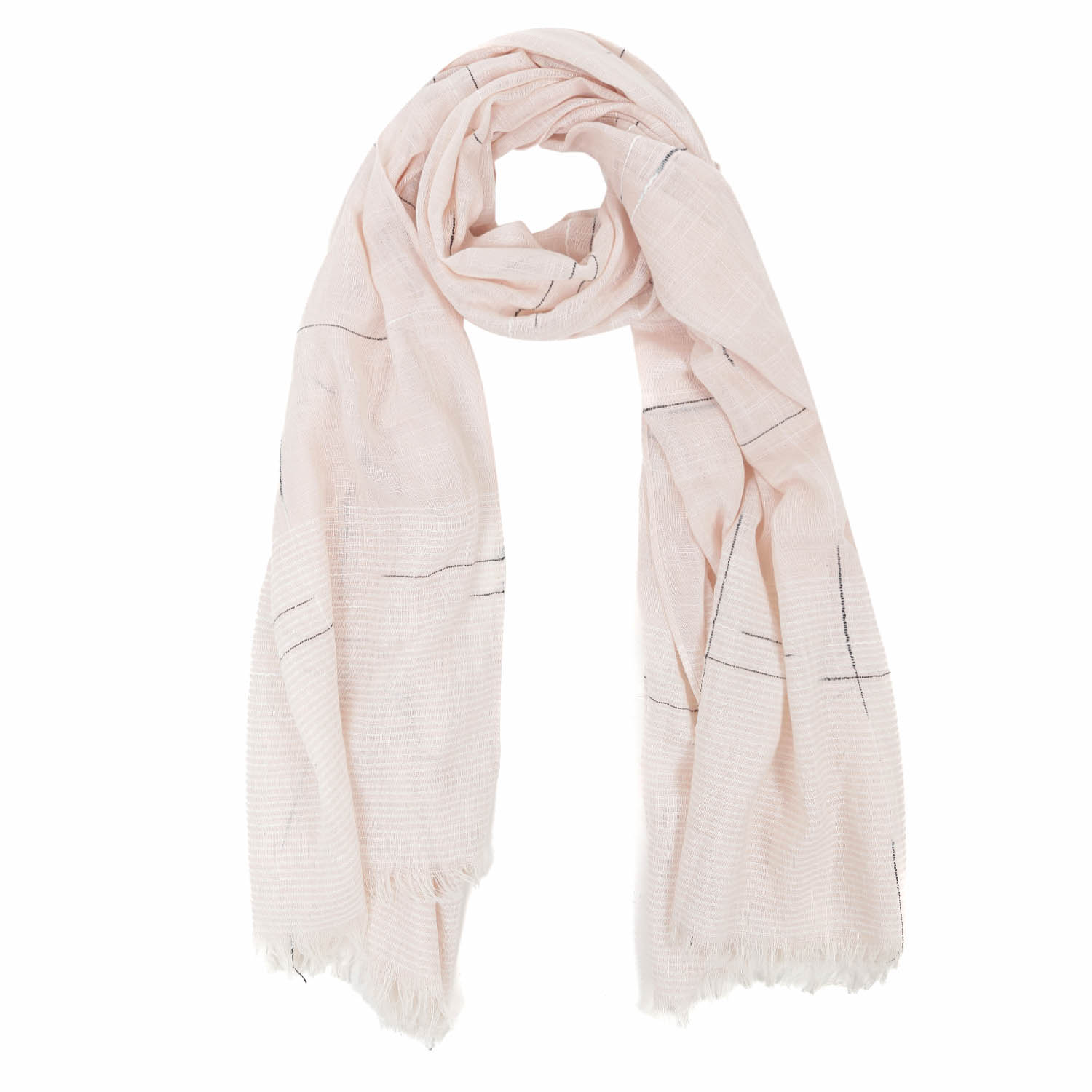 Шарф женский Fabretti выполнен в нежном розовом цвете, создающем атмосферу безмятежности. Тонкие полоски, расположенные по всему периметру, добавляют шарфу изысканности и элегантности. Легкий и мягкий материал на 55% состоит из хлопка, окутает вас  комфортом. Размер 85*185, вес 100г.