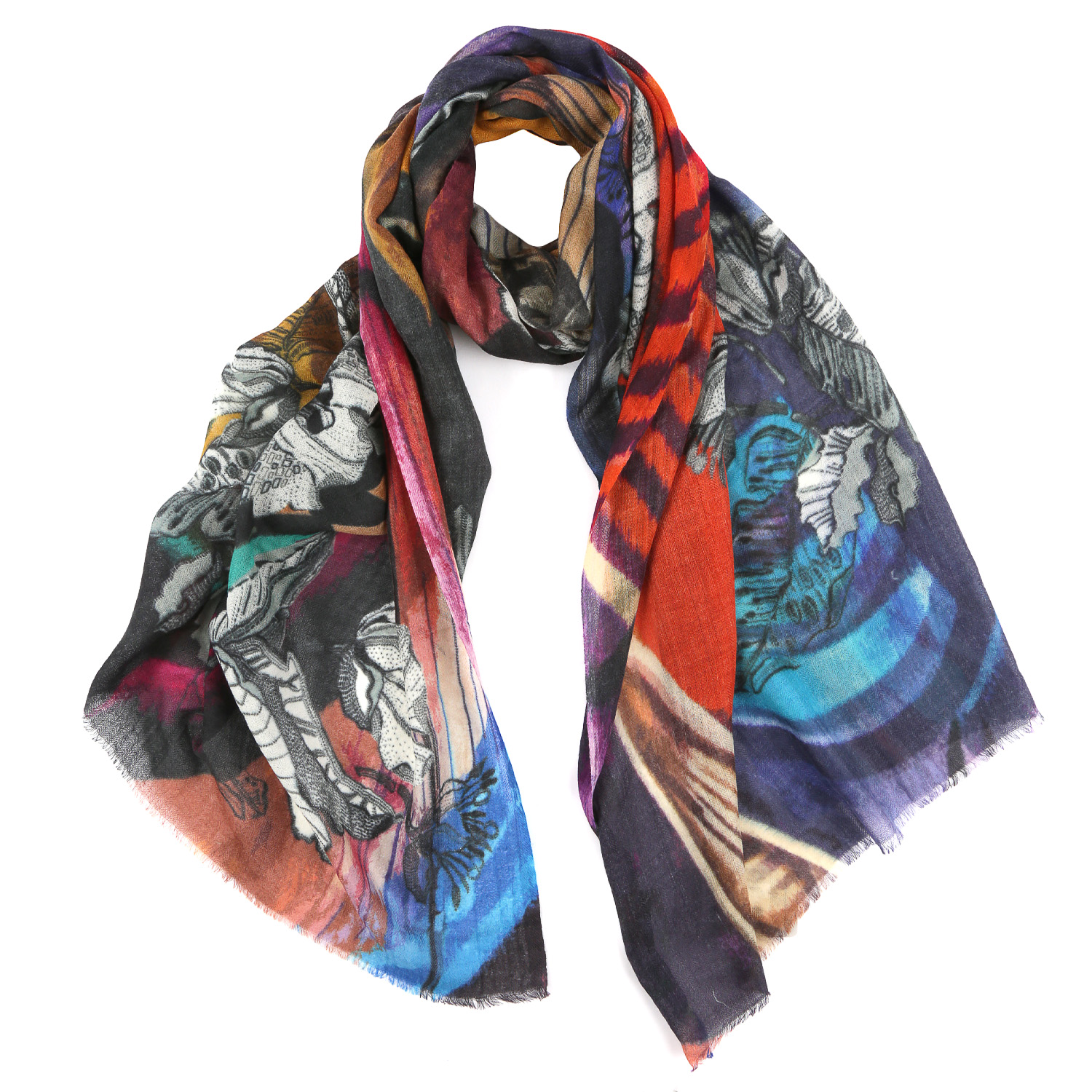 Эффектный шарф LEO VENTONI – прекрасный вариант для межсезонья и европейской зимы. Аксессуар выполнен из натуральной шерсти с добавлением шелка. Изделие дарит ощущение комфорта и тепла, красиво драпируется. Отличается тонкой фактурой и необычайной легкостью. Украшением шарфа служит цветочный орнамент и богатая цветовая палитра. Техника цифровой печати, в которой выполнен рисунок, позволяет предать все цветовые нюансы и переходы. Аккуратные реснички на концах придают модели законченный вид.