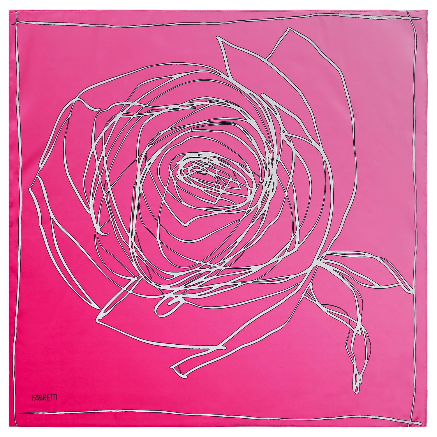 Розовый цвет платка служит идеальным фоном для графичного изображения розы, выполненного белыми линиями. В нижнем левом углу платка дискретно расположен логотип бренда Fabretti, подтверждающий высокое качество и оригинальность изделия. Его можно носить различными способами: повязать на шею, голову, сумку или использовать в качестве декоративного элемента на одежде. Такой аксессуар добавит нотку романтики и индивидуальности вашему образу. Гладкая, струящаяся текстура ткани дарит ощущение комфорта. Размер 70*70, вес 39г.