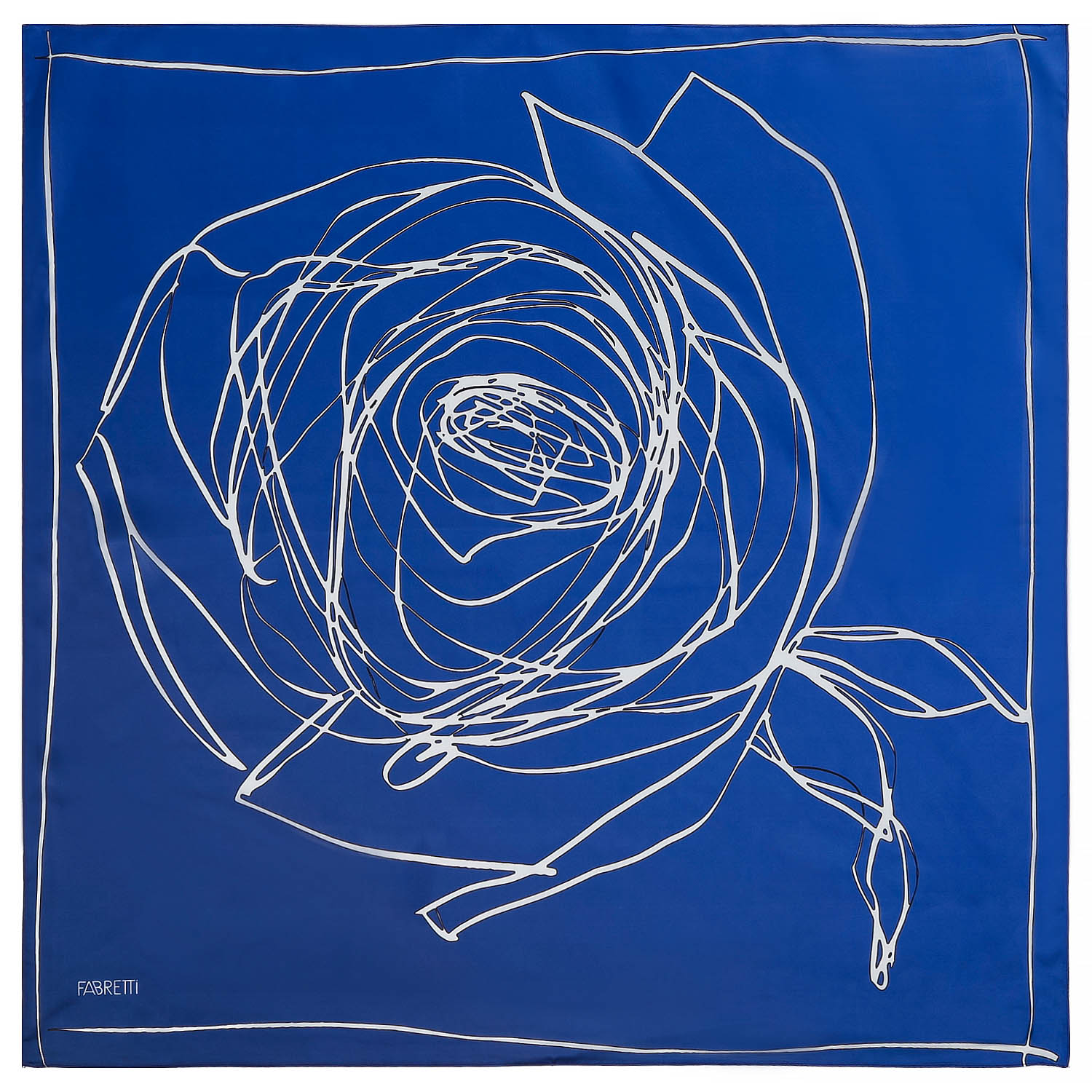Синий цвет платка служит идеальным фоном для графичного изображения розы, выполненного белыми линиями. В нижнем левом углу платка расположен логотип бренда Fabretti, подтверждающий высокое качество и оригинальность изделия. Его можно носить различными способами: повязать на шею, голову, сумку или использовать в качестве декоративного элемента на одежде. Такой аксессуар добавит нотку романтики и индивидуальности вашему образу. Гладкая, струящаяся текстура ткани дарит ощущение комфорта. Размер 70*70, вес 39г.