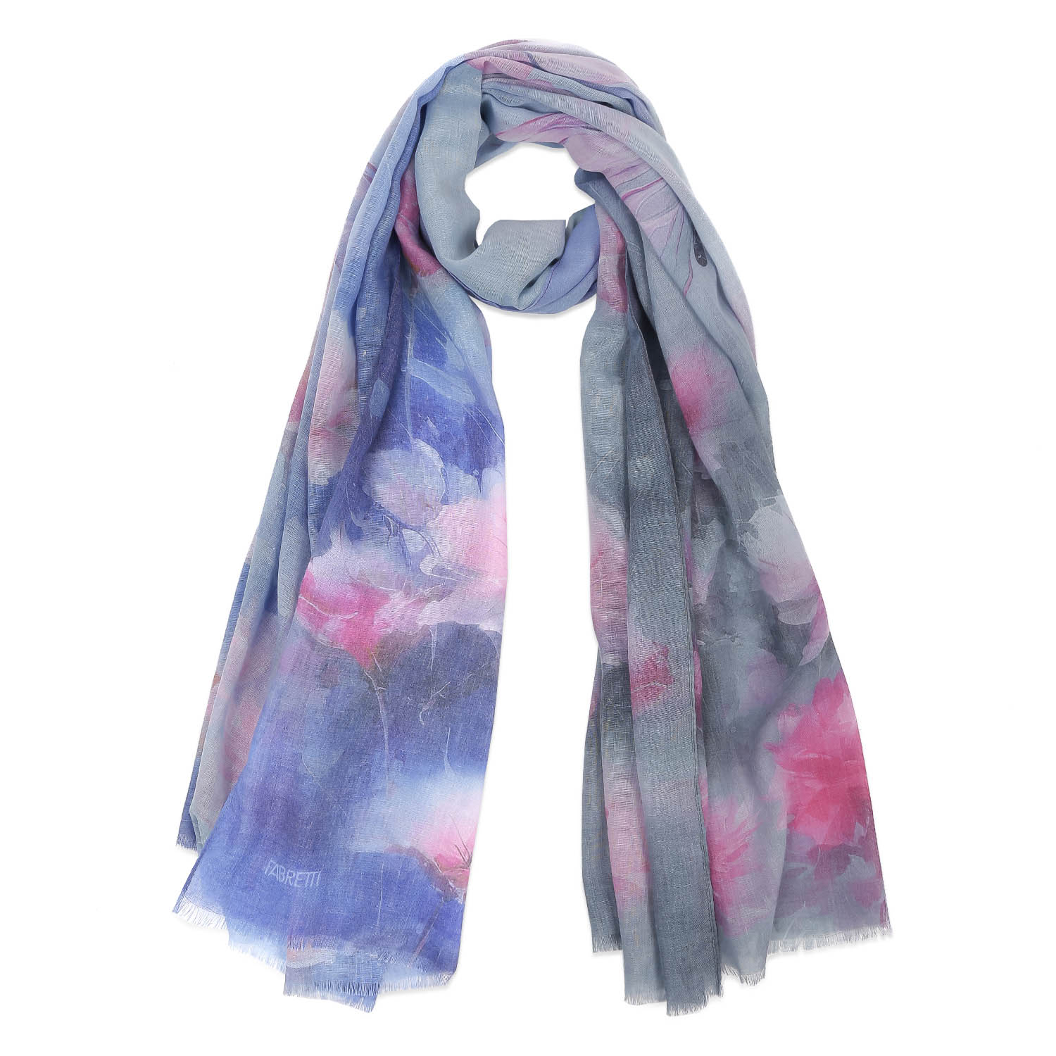 Шарф Fabretti с принтом “цветы и бабочки”. Нежный, романтичный и жизнерадостный аксессуар для создания утонченного образа. Легкий и воздушный материал шарфа подарит вам ощущение комфорта и уюта. Выполнен из 45% вискозы, 55% полиэстера. Размер 90*180, вес 102г.