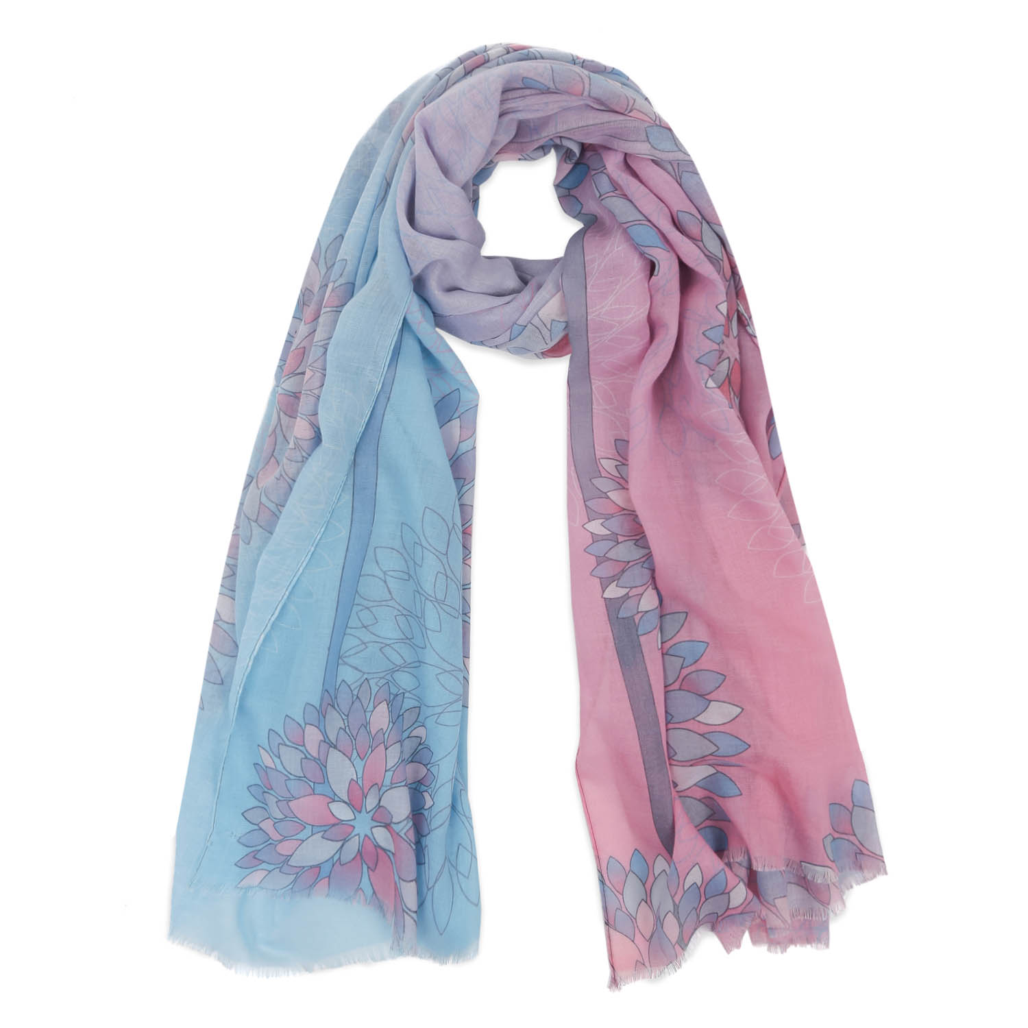 Нежный градиентный фон шарфа Fabretti создает элегантную основу для яркого цветочного узора. Крупные стилизованные цветы, напоминающие пышные георгины, которые рассыпаны по всей поверхности шарфа. Лепестки цветов выполнены в пастельных розовых и серо-голубых тонах, создавая гармоничное сочетание с фоном. Некоторые цветы представлены в полном цвете, другие — в виде изящных контуров, добавляя шарфу легкости и воздушности. Выполнен из 45% вискозы, 55% полиэстера. Размер 90*180, вес 100г.