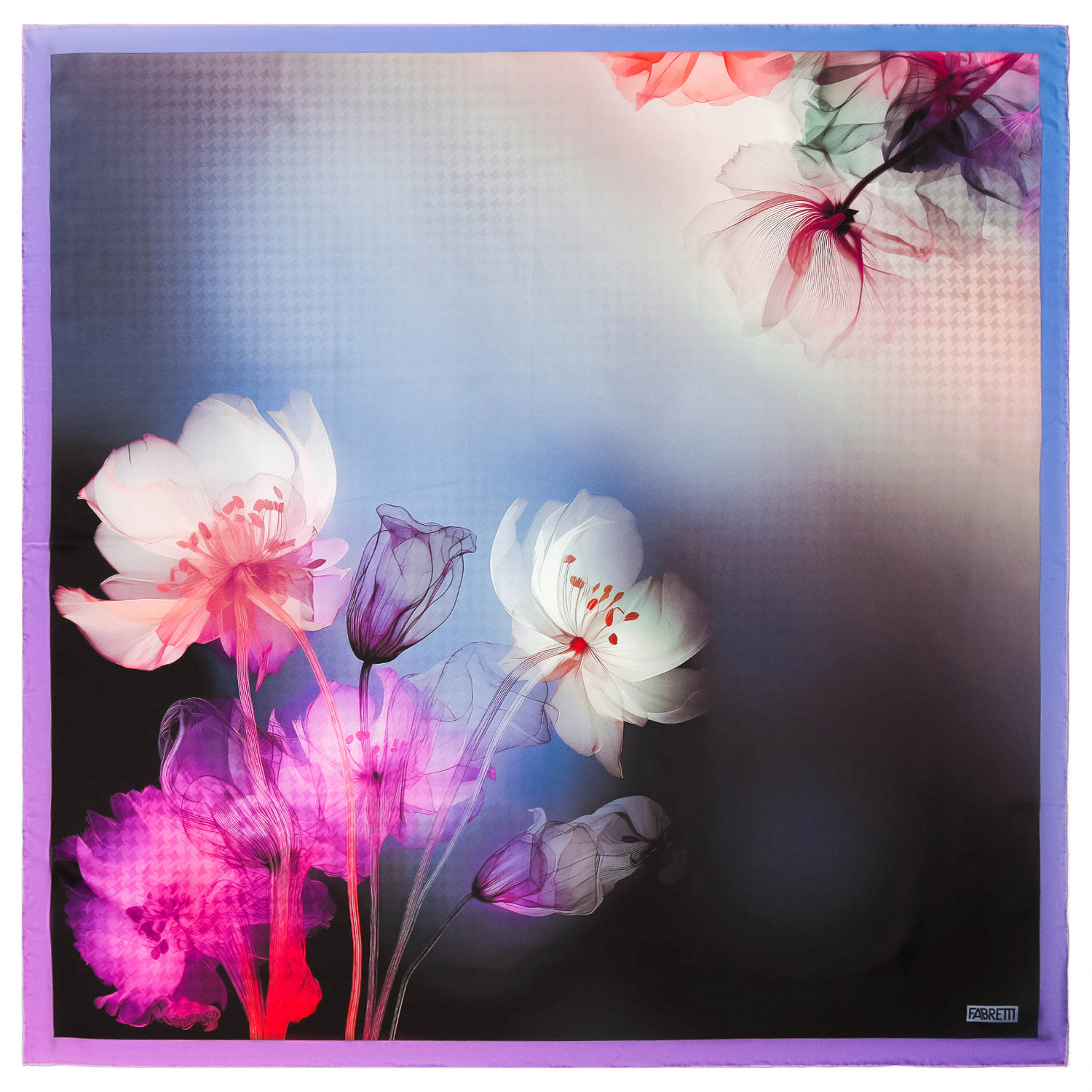 Стильный платок FABRETTI из шелкового твила в сиреневом оттенке станет заметной деталью в образе. Аксессуар легко драпируется и практически не мнется. Не скользит, что позволяет ему прекрасно держать узел. Модель украшена эффектным изображением цветов в свете рентгеновских лучей. Высокую четкость деталей и тонкую цветопередачу удалось получить с помощью сложной техники цифровой печати. Изделие можно носить на шее или повязать на ручку любимой сумки, освежив ее внешний вид. Края обработаны вручную. Размер 90*90 см. Плотность - 12 момми.