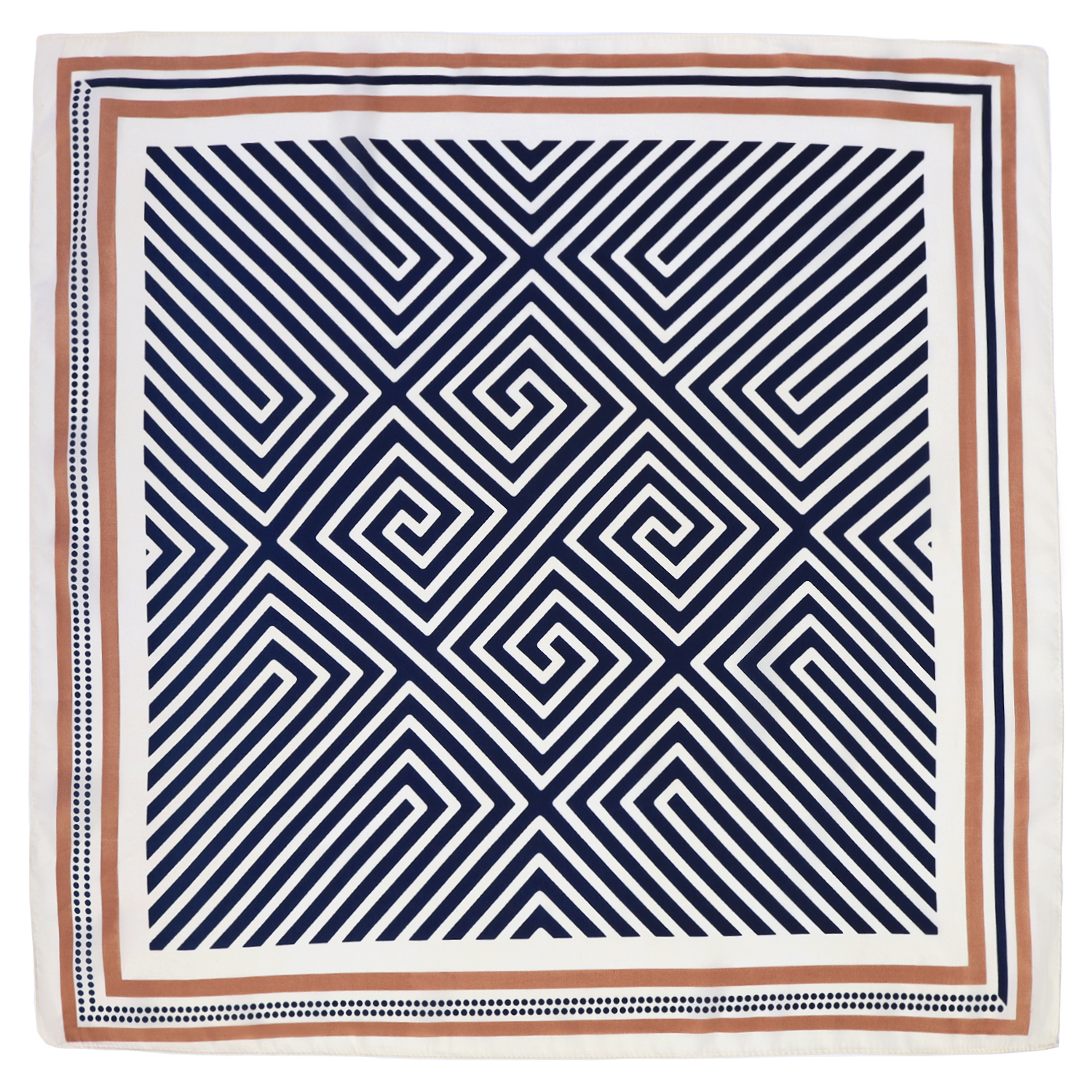 Геометрический «лабиринт» из контрастных темно-синих и светлых линий притягивает внимание. Он отлично сочетается с однотонной одеждой – в качестве основного акцента или с гардеробом со схожими узорами.