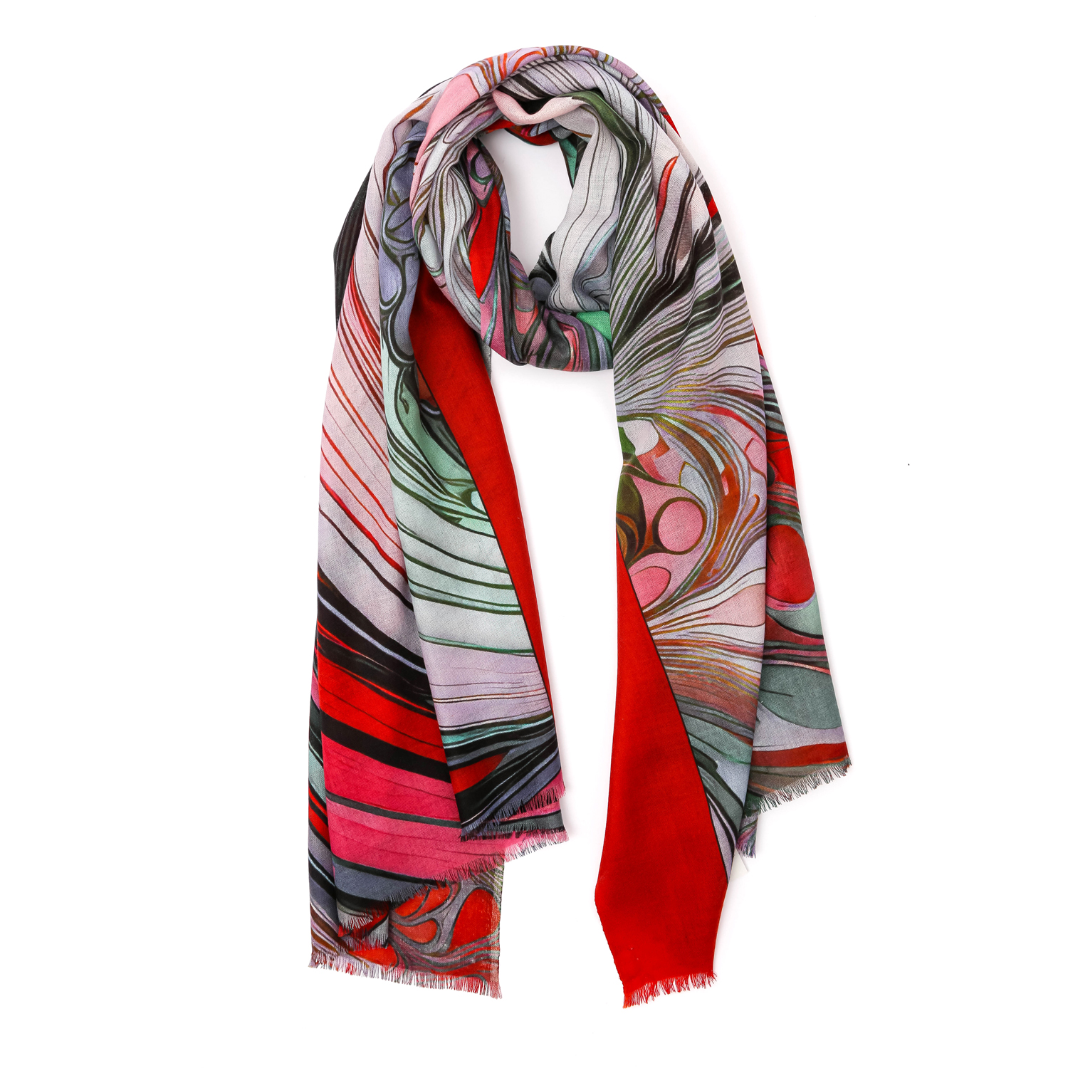 Женский шарф FABRETTI в красном оттенке обладает приятной фактурой и декорирован абстрактным узором. Аксессуар выполнен из мерсеризованной шерсти. Благодаря специальной обработке натуральная шерсть становится мягкой, шелковистой и приобретает восхитительный блеск. Изделие почти не мнется, не пилингуется и не блекнет, поэтому надолго сохранит первоначальный вид. Края украшены мелкими ресничками. Размер 70*180 см.