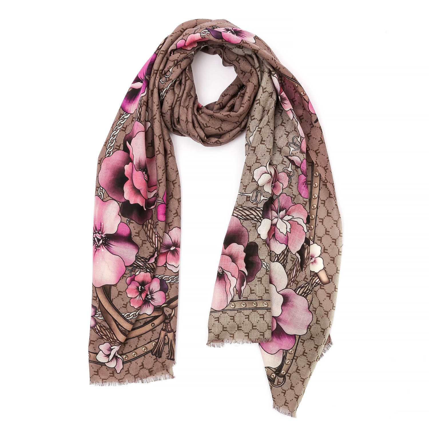 Шарф "Логомания Цветы" 100% мерсеризованная шерсть, 180*70см, FABRETTI VFVRN5-10