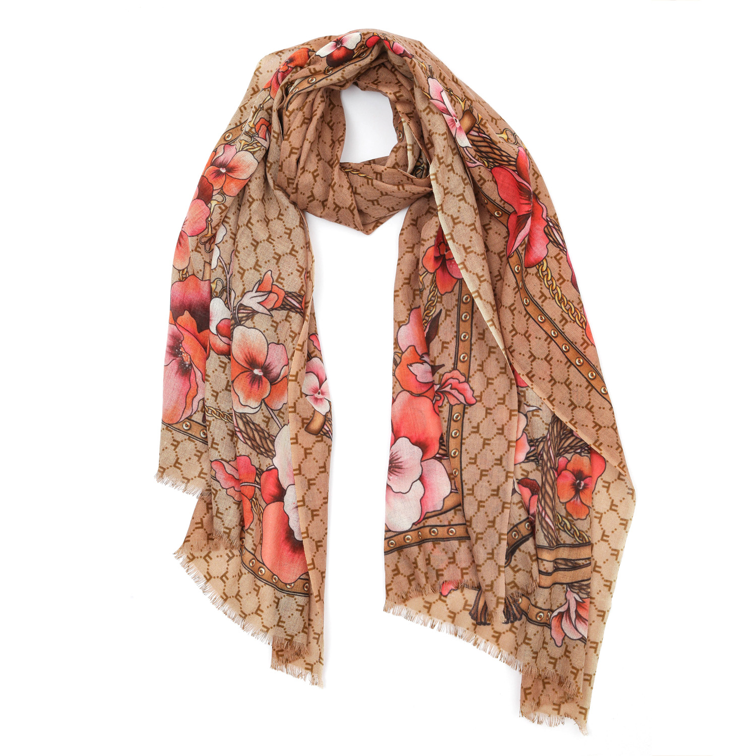 Шарф "Логомания Цветы" 100% мерсеризованная шерсть, 180*70см, FABRETTI VFVRN5-6