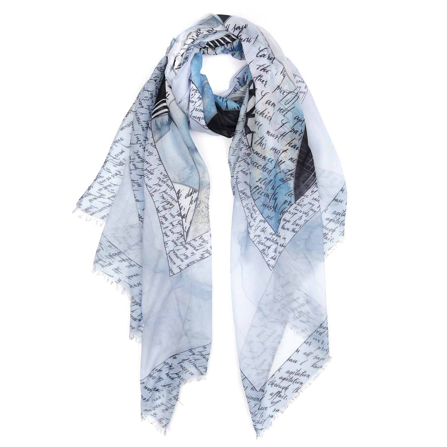 Стильный шарф FABRETTI в нежной голубой гамме обладает легкой текстурой и дополнит любой образ. Дизайнерский принт, сочетающий надписи и геометрические узоры, придает изделию особую выразительность. Аксессуар выполнен из качественного полиэстера, обладающего мягкостью, лёгкостью, устойчивостью к сохранению цвета и формы.