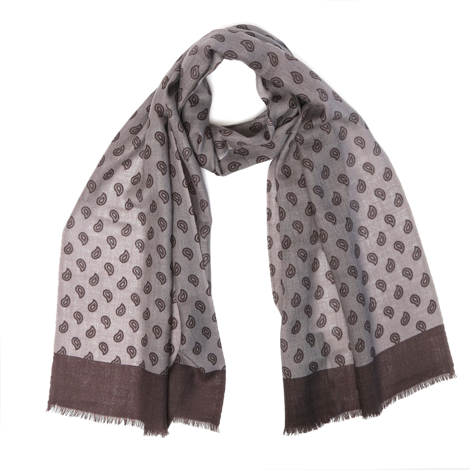 Мужской шарф FABRETTI в сером оттенке не только согреет в холодные дни, но и прекрасно дополнит любой образ. Аксессуар выполнен из натуральной мягкой шерсти, отлично сохраняет тепло и позволяет коже дышать. В качестве декора выбрана лаконичная вариация узора «пейсли». Края изделия декорированы ресничками. Размер 45*190 см.