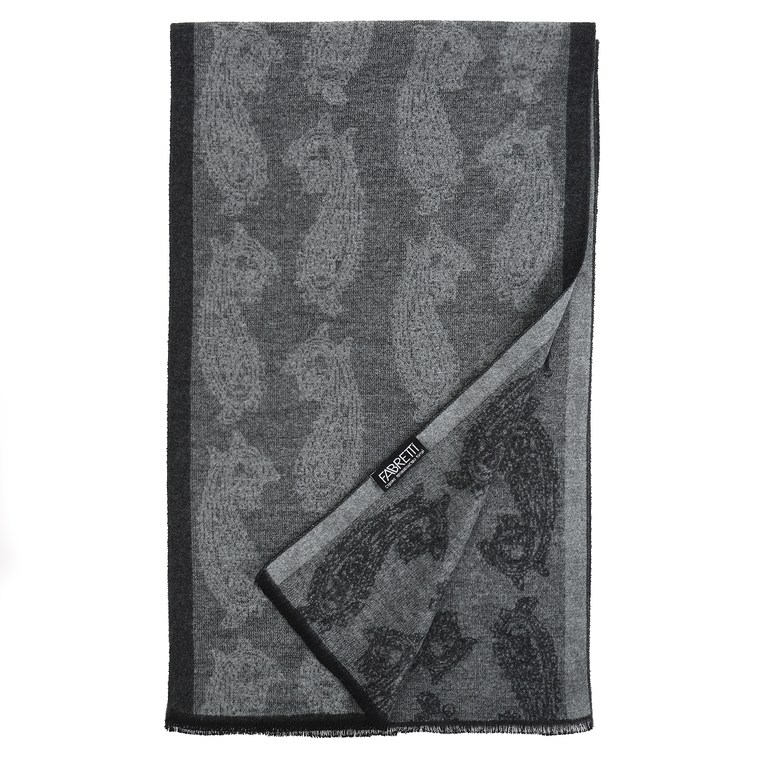 Двусторонний длинный мужской шарф итальянского бренда FABRETTI в серых тонах, украшенный узором «пейсли».