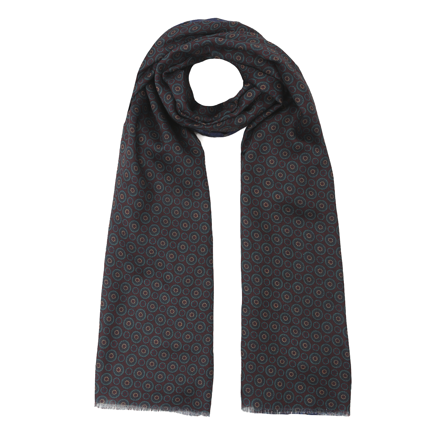 Легкий мужской шарф итальянского бренда FABRETTI в бордовом цвете, украшенный классическим геометрическим принтом. Материал хорошо пропускает воздух, держит форму, устойчива к выцветанию.