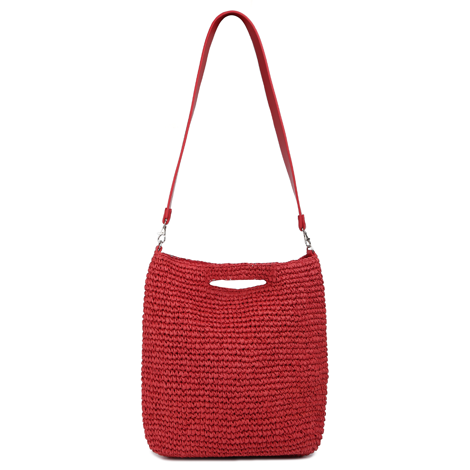Плетеная женская сумка-пакет итальянского бренда FABRETTI в красном цвете. Летняя ретро-сумка в технике макраме из целлюлозной соломки отвечает тренду на натуральность и естественность в образе. Он будет отлично смотреться и с пляжным гардеробом, и дополнит повседневный городской лук.