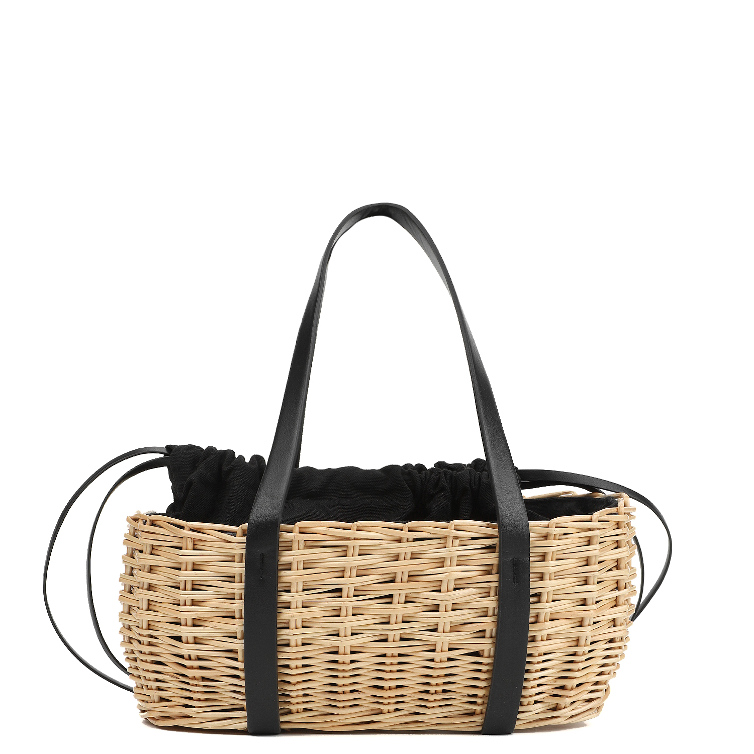 Корзинка – популярный летний вариант сумки в стиле ретро. Она прекрасно сочетается с пляжным гардеробом и повседневной женственной одеждой в натуральных тонах. Эту модель часто дополняют широкополой шляпой-флоппи из соломки. Цвет подкладки: черный.