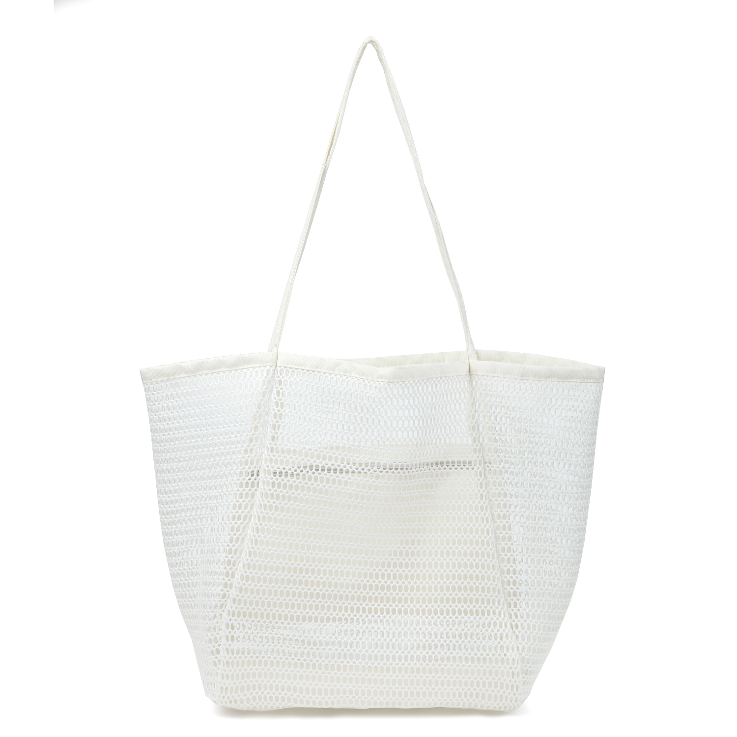 Летняя женская сумка итальянского бренда FABRETTI из белой сетки – пляжный вариант с минимальным декором. Это большая, вместительная сумка с плоским дном и карманом на молнии выполнена из перфорированного материала с узором сотами. Тонкие текстильные ручки подходят для ношения сумки на плече или в руках.