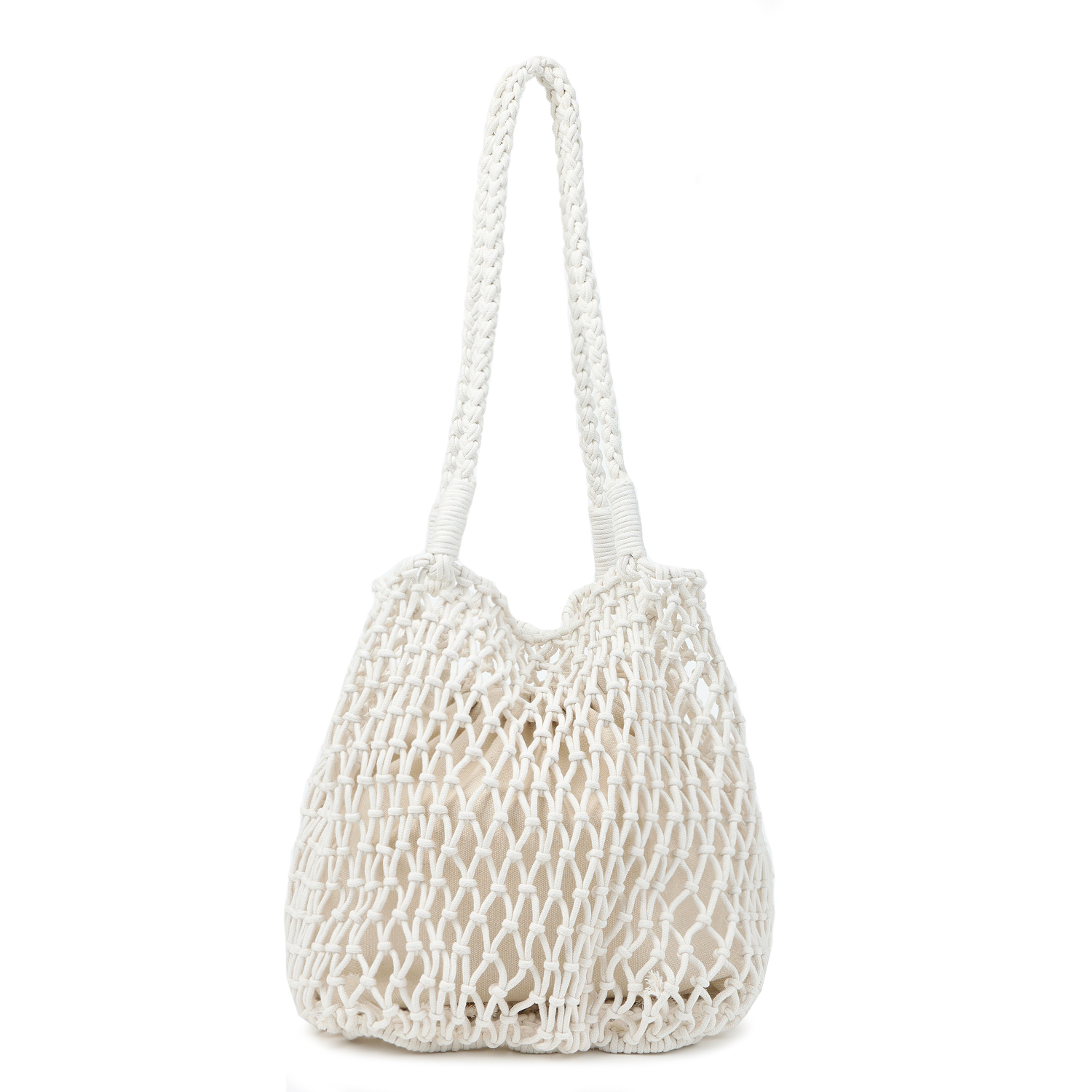 Необычная женская сумка тоут итальянского бренда FABRETTI, выполненная в технике макраме в белом цвете. Эта модель смотрится броско и оригинально – с одной стороны, узнаваемое плетение в стиле «авоськи», с другой – оригинальный дизайн, широкое прямоугольное дно и текстильная подкладка с утягивающим шнурком. Эта модель прекрасно впишется в пляжный образ, но и в городском гардеробе она может занять достойное место.