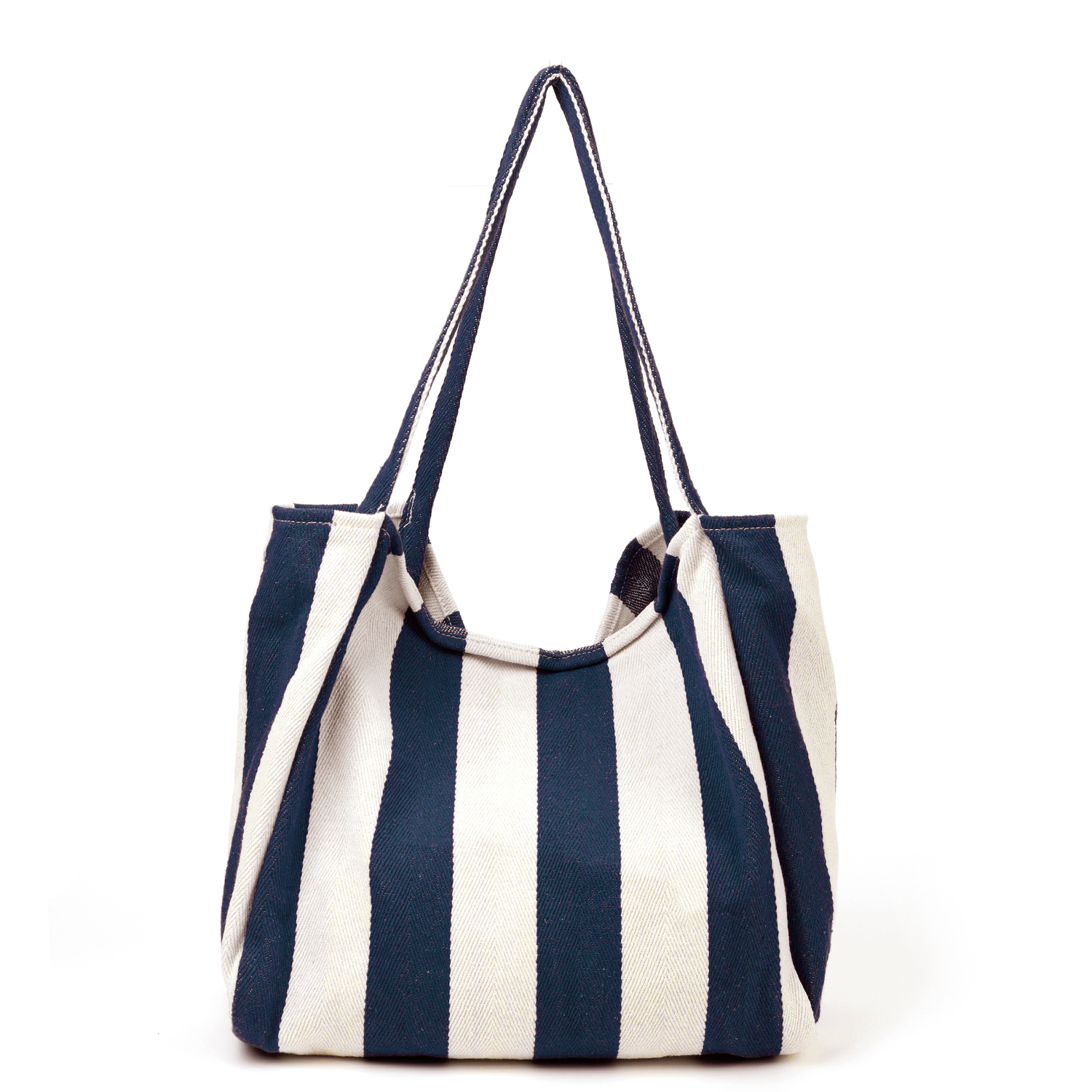 Вместительная пляжная сумка итальянского бренда FABRETTI в классическом для круизного стиля сочетании цветов – в широкую синюю и белую полоску.