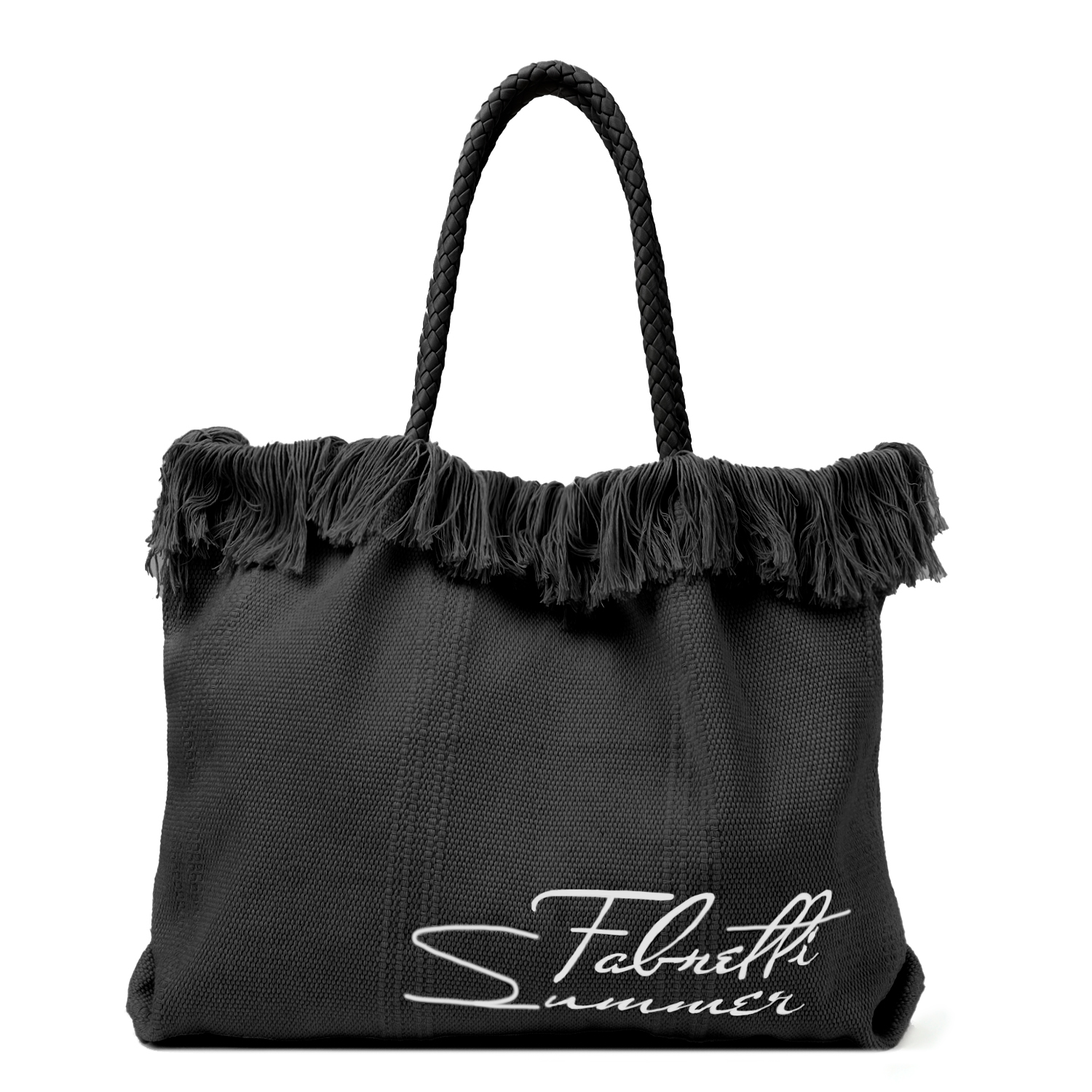 Вместительная женская сумка-шоппер итальянского бренда FABRETTI – летняя модель из натурального хлопка для города и отпуска в черном цвете.
