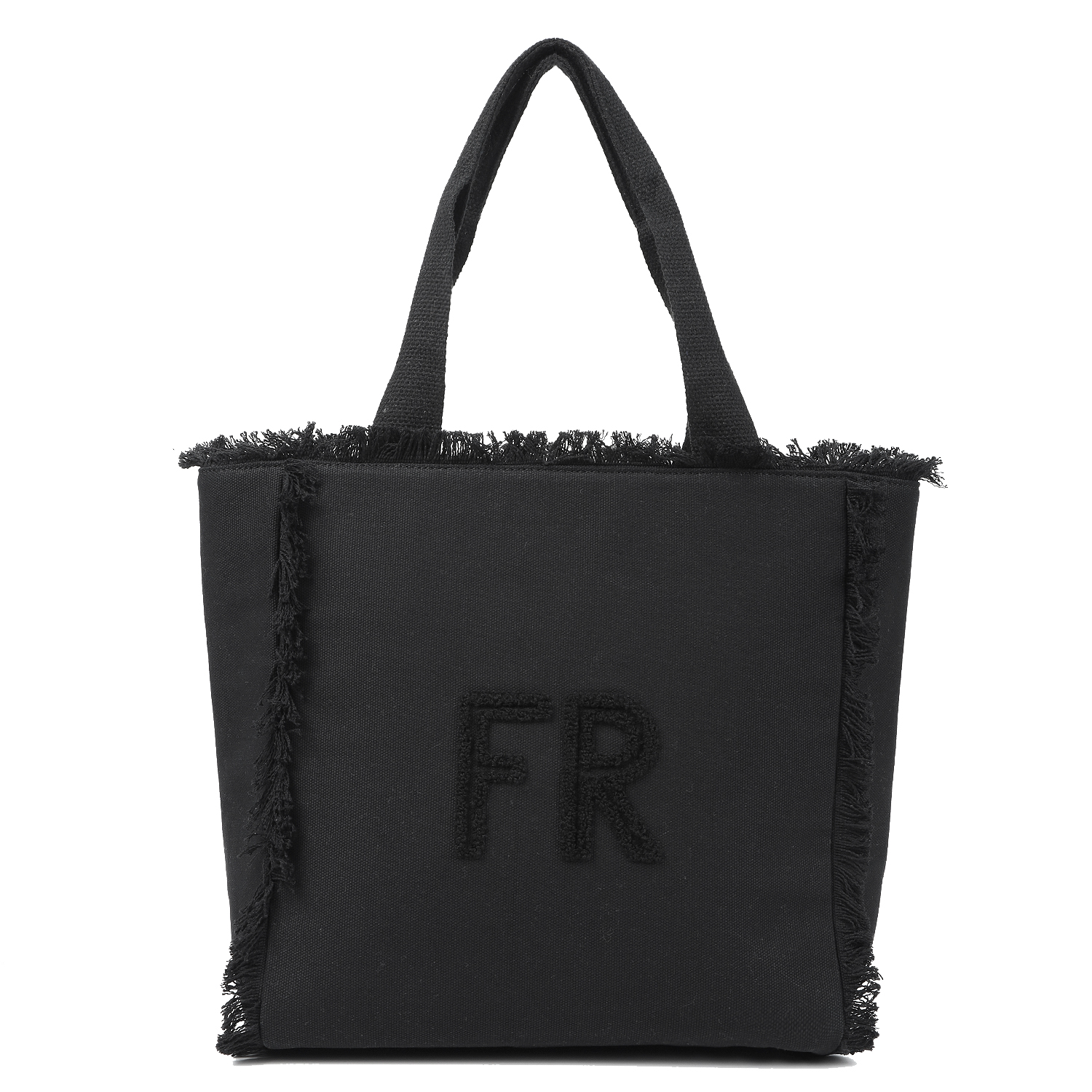 Сумка интересно украшена бахромой по верху и вдоль основных швов, на лицевой стороне логотип из махровой ткани.
