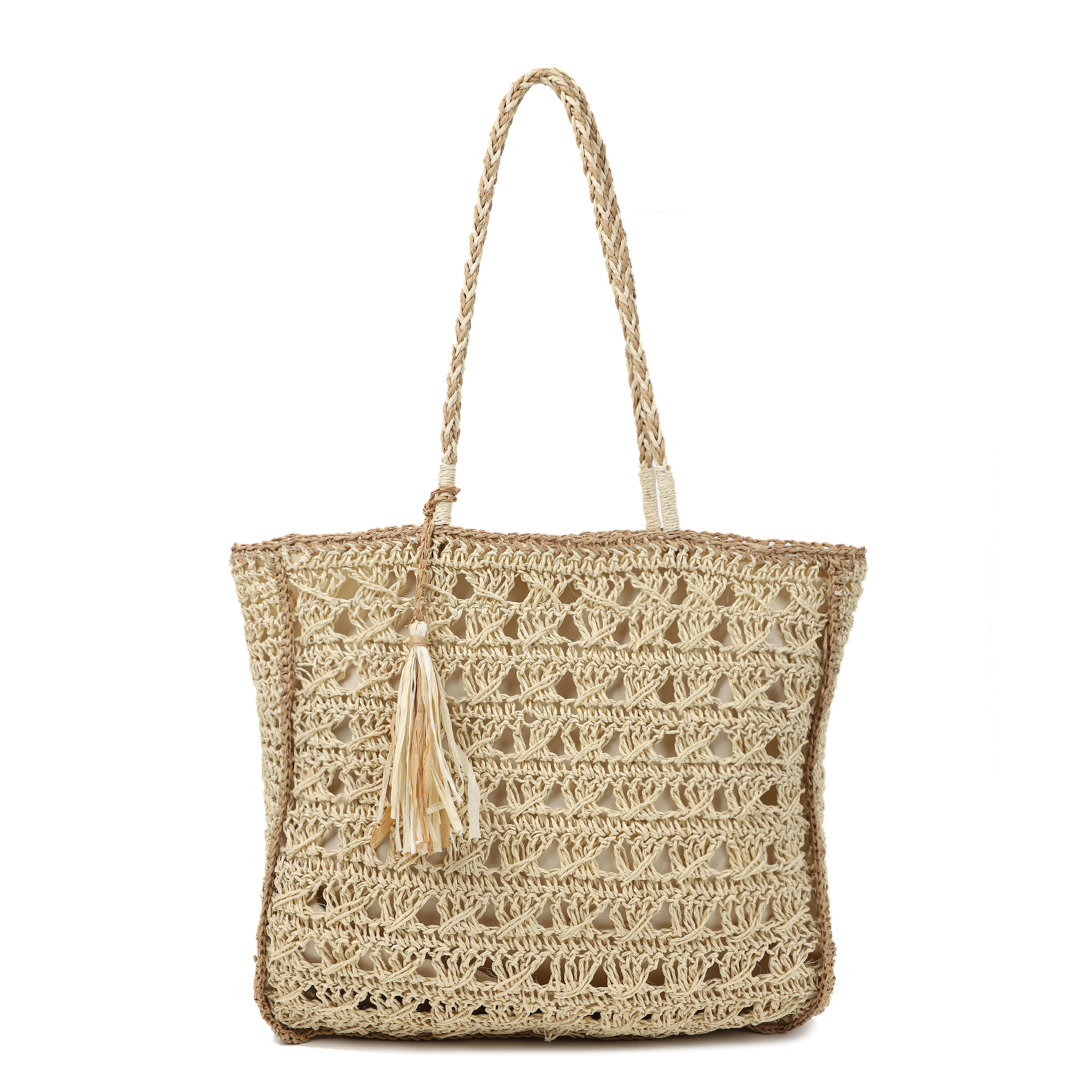 Эта модель станет отличным дополнением для образа на лето – и в качестве пляжного аксессуара, и для ношения в городе с легкими платьями или джинсами. Плетеная соломка из целлюлозы добавляет аксессуару фактурности, а небольшая подвеска-кисточка завершает образ.