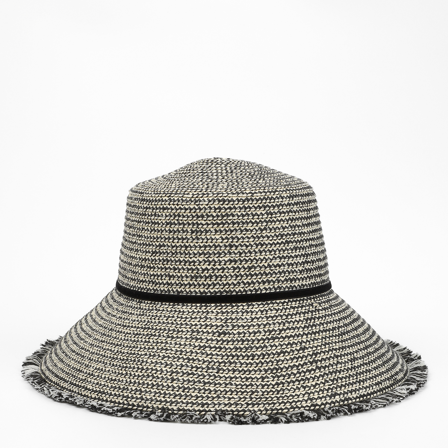 Шляпа-абажур - классическая летняя модель с опущенными длинными полями прекрасно защищает от солнца и придает образу романтичную загадочность. Шляпка выполнена в монохромном дизайне из плетеной соломки и украшена узкой бархатной лентой на тулье и бахромой по краю полей. Внутри размер регулируется лентой.