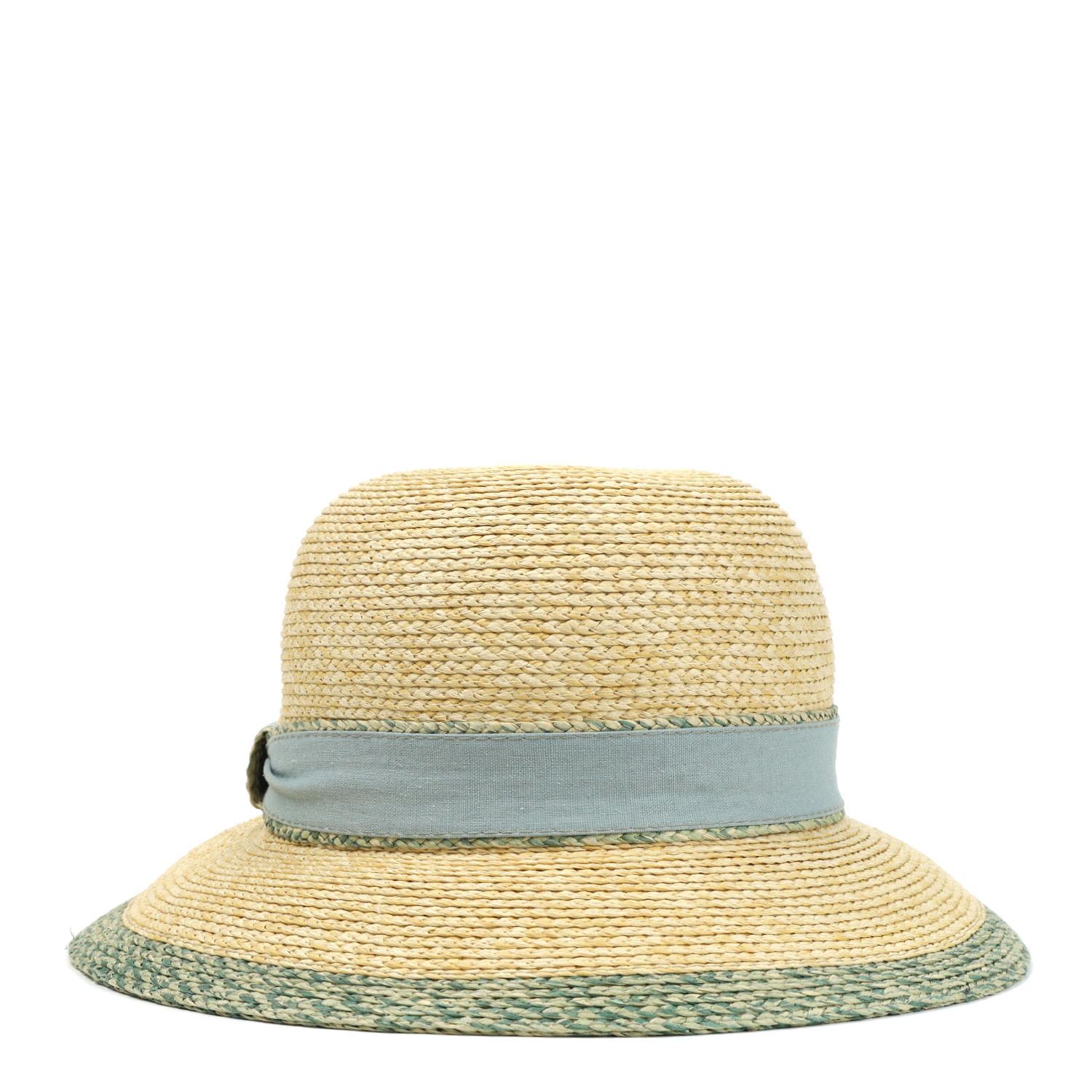 Элегантная летняя женская шляпа итальянского бренда FABRETTI в классическом соломенном цвете с нежно-зеленой отделкой полей.