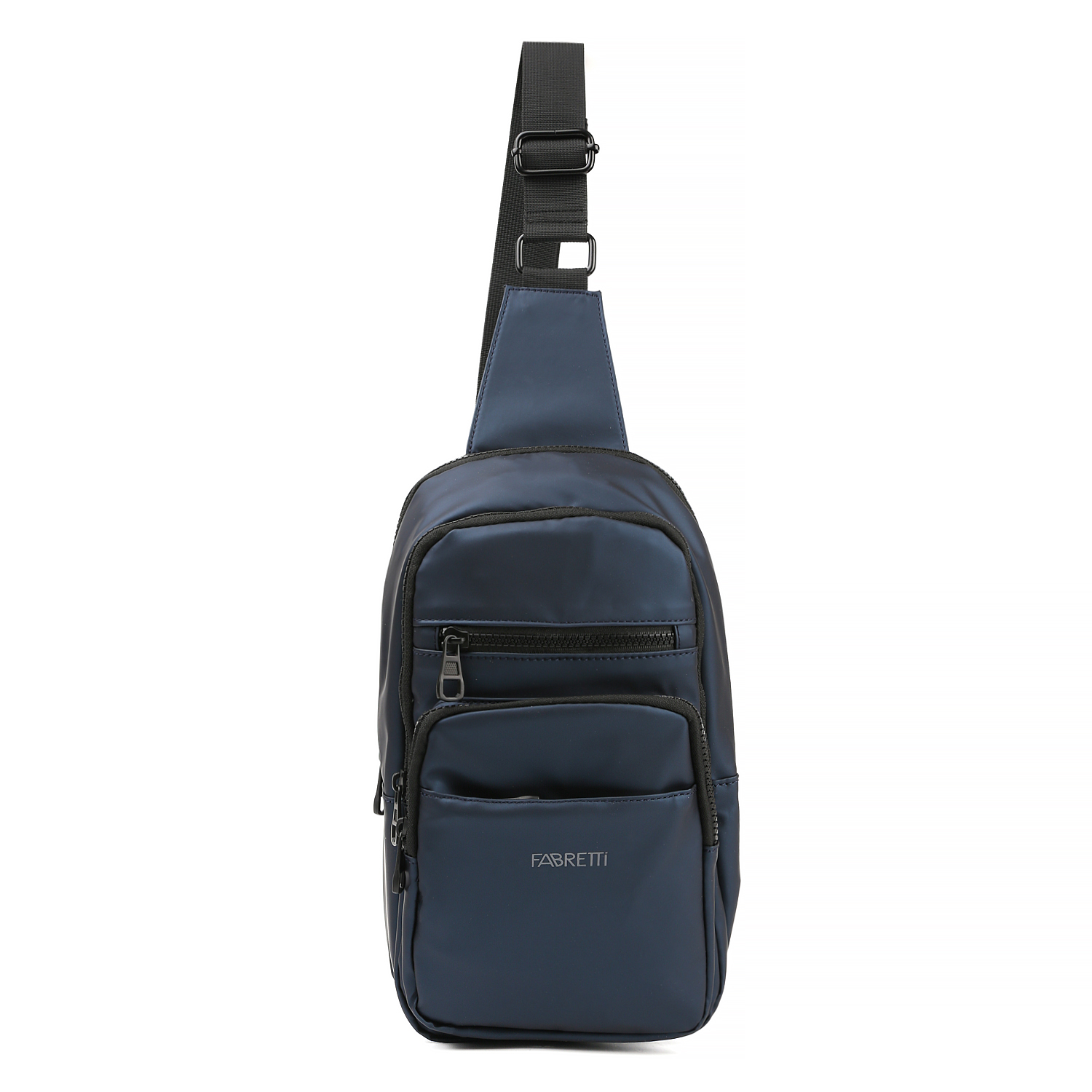Дорожная сумка FABRETTI в синем оттенке выполнена из влагостойкого нейлона. Аксессуар идеально подойдет для путешествия, в ней можно разместить нужные документы и вещи первой необходимости. Основное отделение закрывается на молнию, внутри расположены 3 открытых кармана. На лицевой стороне сумки расположено дополнительное второе отделение, а также 3 кармана на молнии. Длина плечевого ремня регулируется, ширина - 4 см.
