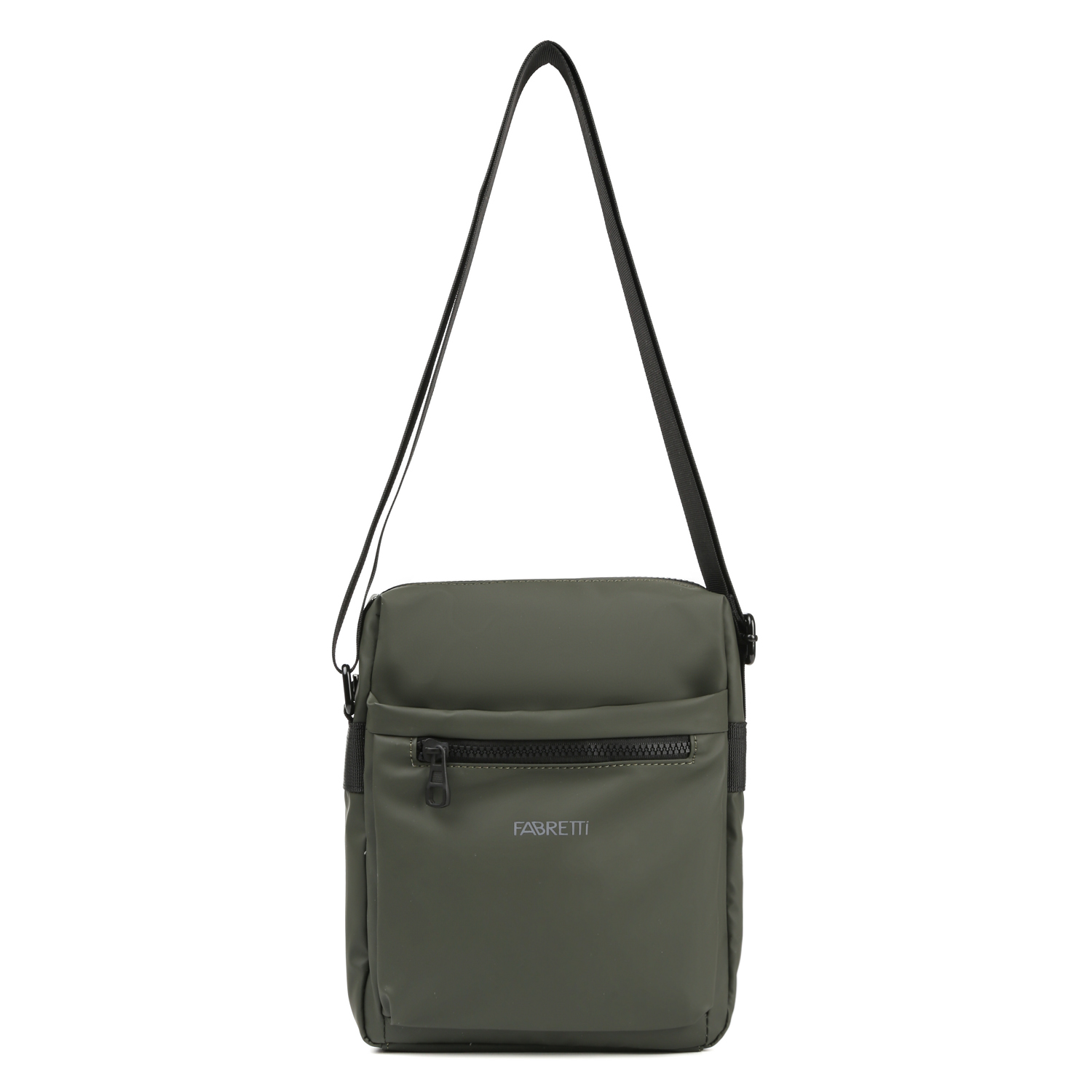 Дорожная сумка через плечо FABRETTI в оттенке хаки выполнена из влагостойкого нейлона. Аксессуар идеально подойдет для путешествия, в ней можно разместить нужные документы и вещи первой необходимости. Основное отделение закрывается на молнию, внутри расположены 4 открытых кармана и один на молнии. На лицевой стороне сумки расположены 2 кармана на молнии и один на тыльной. Длина плечевого ремня регулируется, ширина - 4 см.