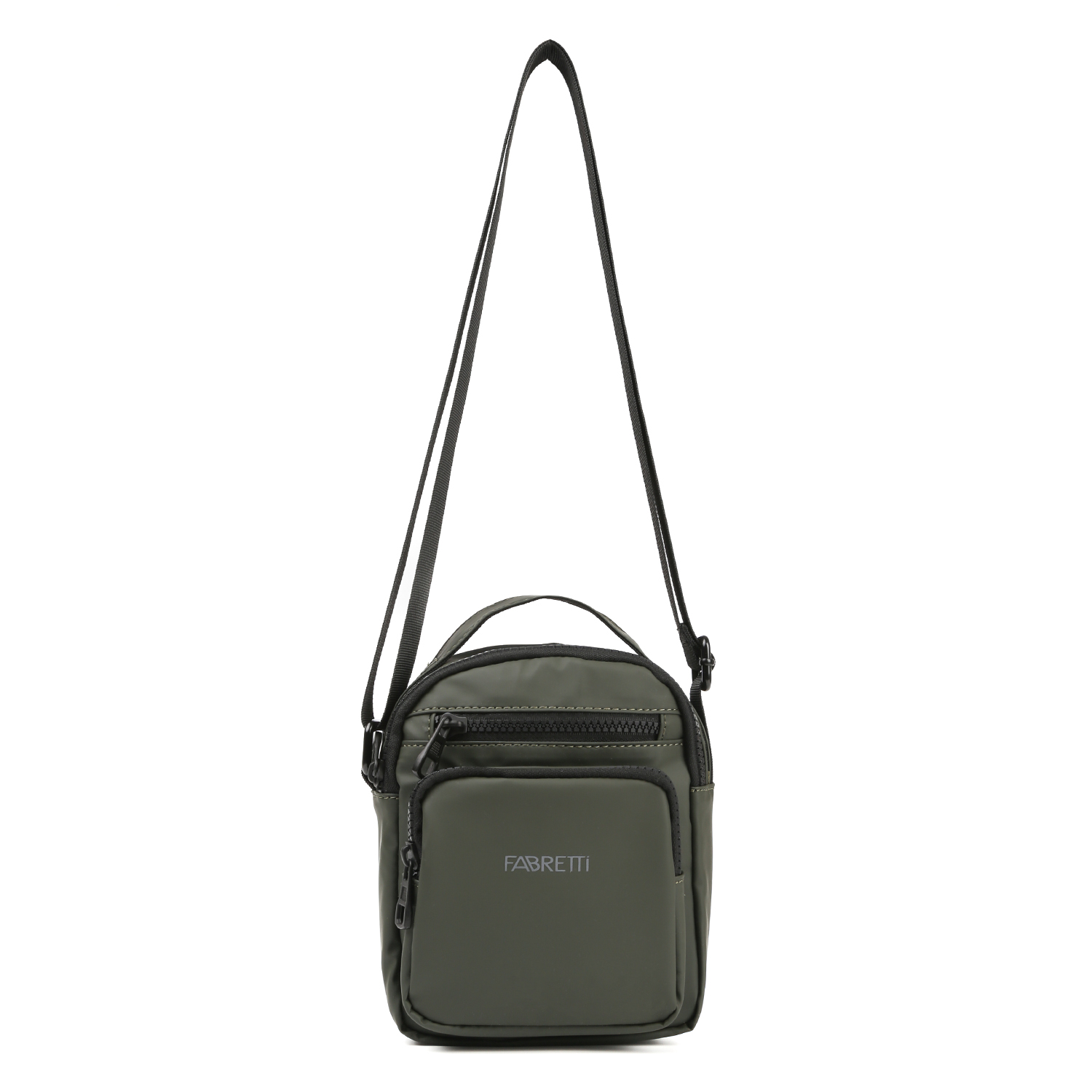 Дорожная сумка через плечо FABRETTI в оттенке хаки выполнена из влагостойкого нейлона. Аксессуар идеально подойдет для путешествия, в ней можно разместить нужные документы и вещи первой необходимости. Основное отделение закрывается на молнию, внутри расположен один открытый карман. На лицевой стороне сумки расположены 2 кармана на молнии, а на тыльной стороне - один на кнопке. У сумки есть ручка для комфортного ношения в руках. Длина плечевого ремня регулируется, ширина - 3 см.