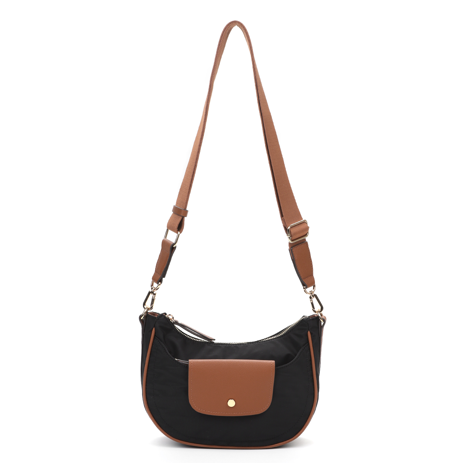 Изящная женская сумка кросс-боди в форме полумесяца из коллекции итальянского бренда FABRETTI насыщенного черного цвета. Стильная и продуманная модель, соответствующая мировым трендам сезона.