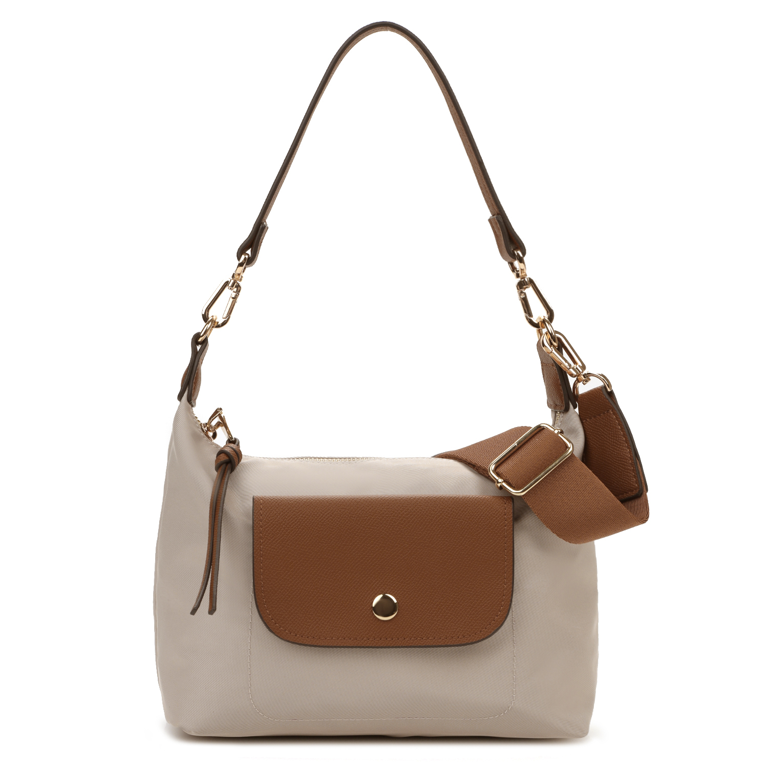 Сумка дополнена двумя видами съемных ручек – короткой ручкой из экокожи и регулируемым текстильным плечевым ремнем.