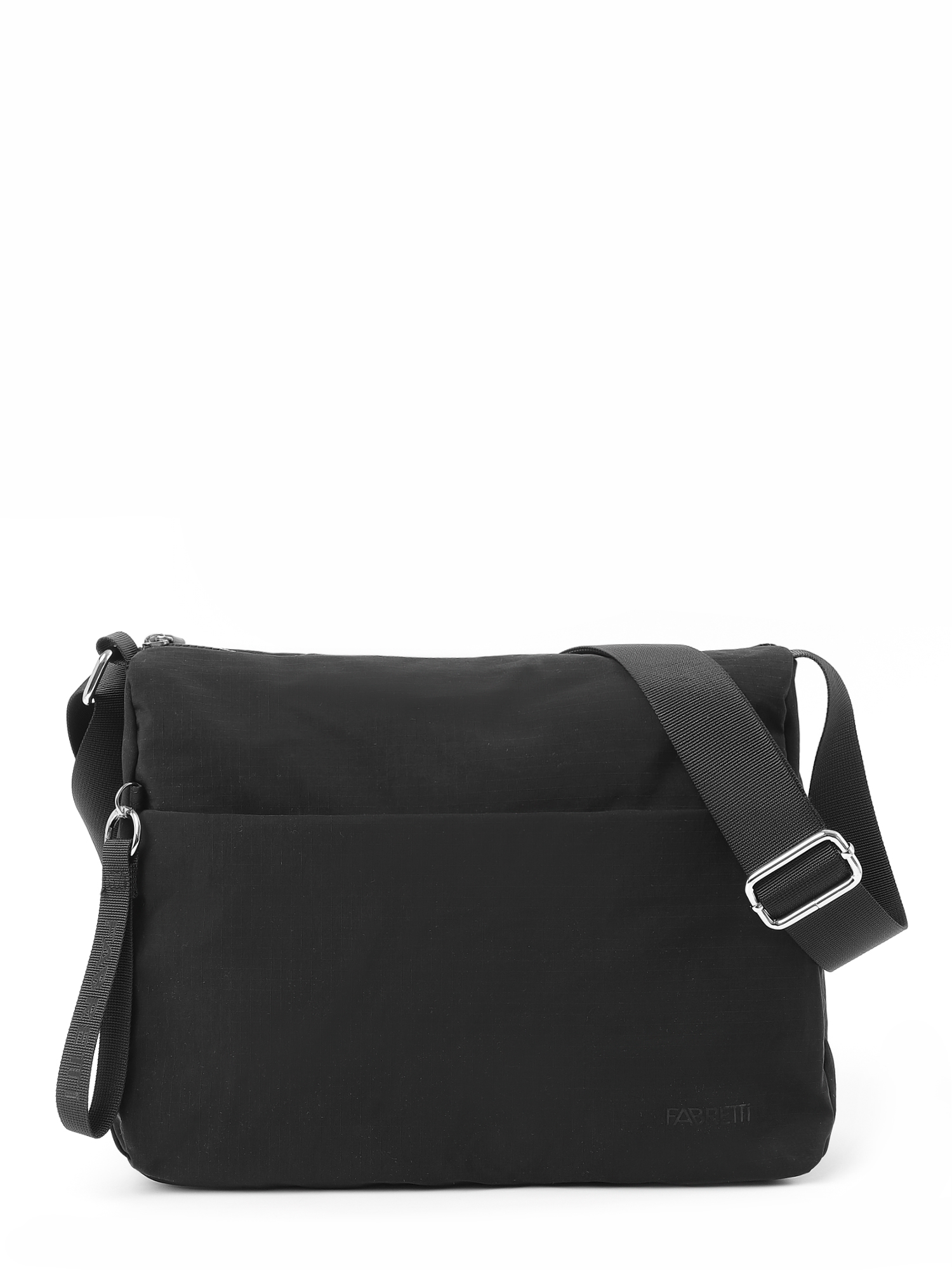 Удобная текстильная женская сумка итальянского бренда FABRETTI отлично подходит для повседневного использования и коротких поездок. Модель прямоугольной формы выполнена из легкой ткани с характерной фактурой в клетку в черном цвете.