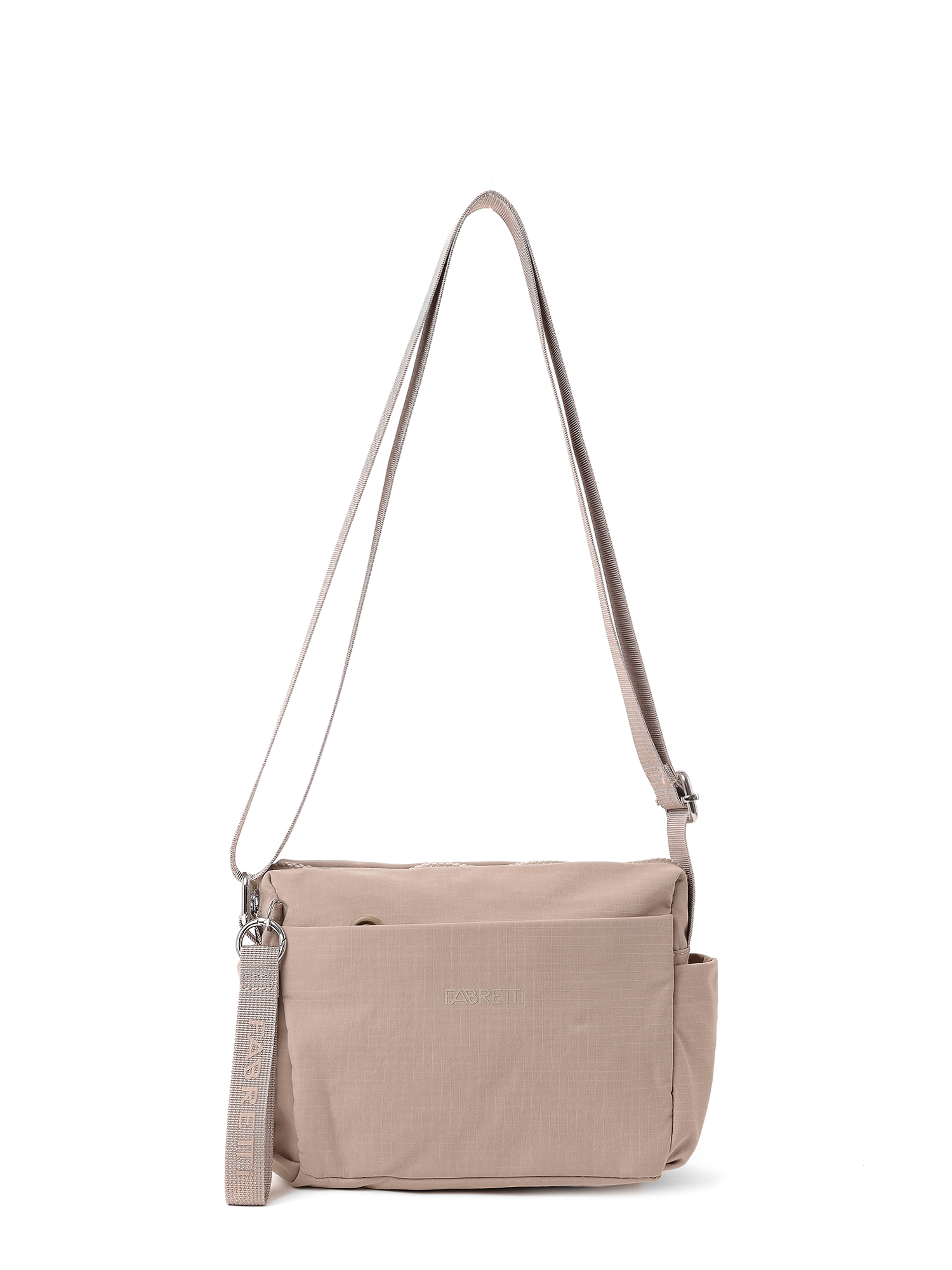 Компактная текстильная женская сумка итальянского бренда FABRETTI отлично подходит для ношения в городе и в небольших поездках. Горизонтальная модель прямоугольной формы выполнена из легкой ткани с характерной фактурой в клетку в бежевом оттенке.