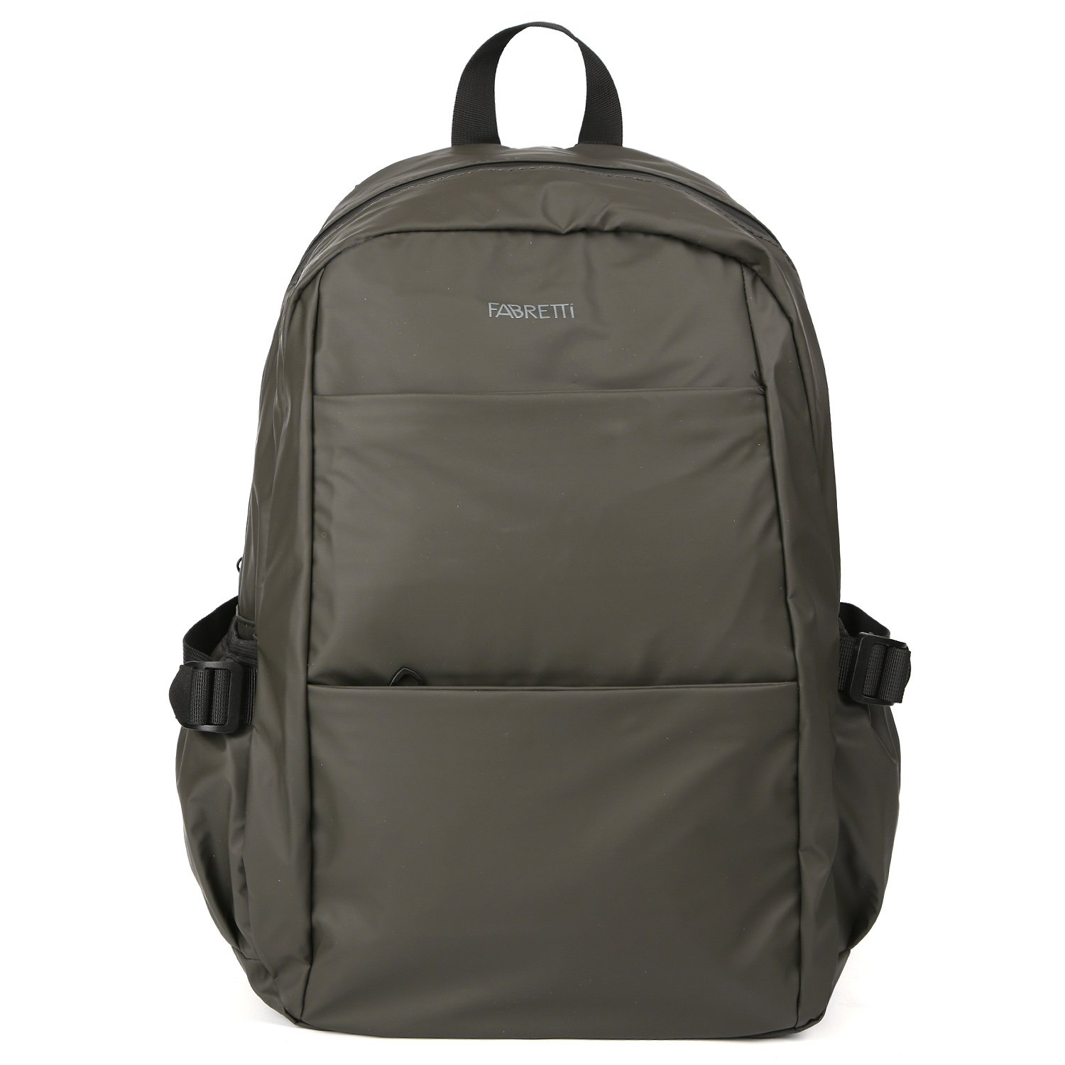 Стильный рюкзак FABRETTI в оттенке хаки выполнен из влагостойкого гладкого нейлона. Он практичен и прост в уходе. Спинка и лямки оснащены мягкими вставками с системой циркуляции воздуха Air Flow, что обеспечивает комфорт и вентиляцию во время ношения. Просторное отделение закрывается на влагозащитную молнию с 2 бегунками. Внутри – отделение для гаджетов, закрывающееся на хлястик с липучкой; 2 боковых кармана: открытый и на молнии; органайзер для ручек и мелочей. На фронтальной части размещаются два вместительных кармана на молнии. Также имеются два открытых боковых кармана на резинке и с фиксирующими текстильными ремнями. Рюкзак прекрасно подойдёт для прогулок по городу, велосипедных поездок или путешествий.