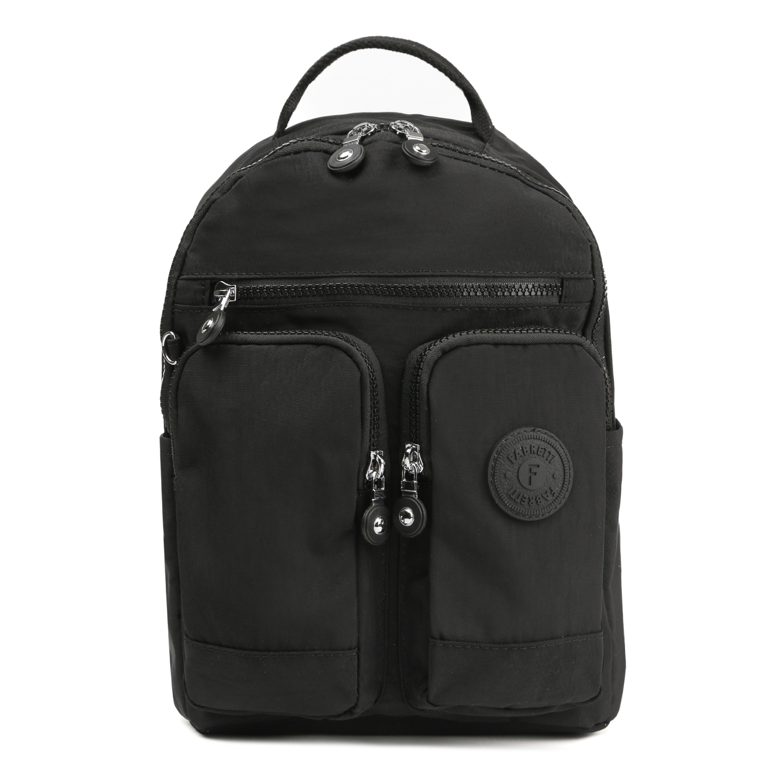 Текстильный рюкзак FABRETTI в черном оттенке выполнен из высокотехнологичного влагостойкого полиэстера. Он практичен и прост в уходе. Модель имеет продуманную систему хранения. Основное отделение закрывается на молнию. Внутри 3 боковых кармана и секция с мягкой стенкой для гаджетов. На лицевой стороне находятся 3 кармана на молнии. По бокам есть 2 открытых кармана. На тыльной стороне предусмотрен карман быстрого доступа на молнии. Две текстильные лямки регулируются по длине, ширина - 5 см. Сверху предусмотрена ручка.