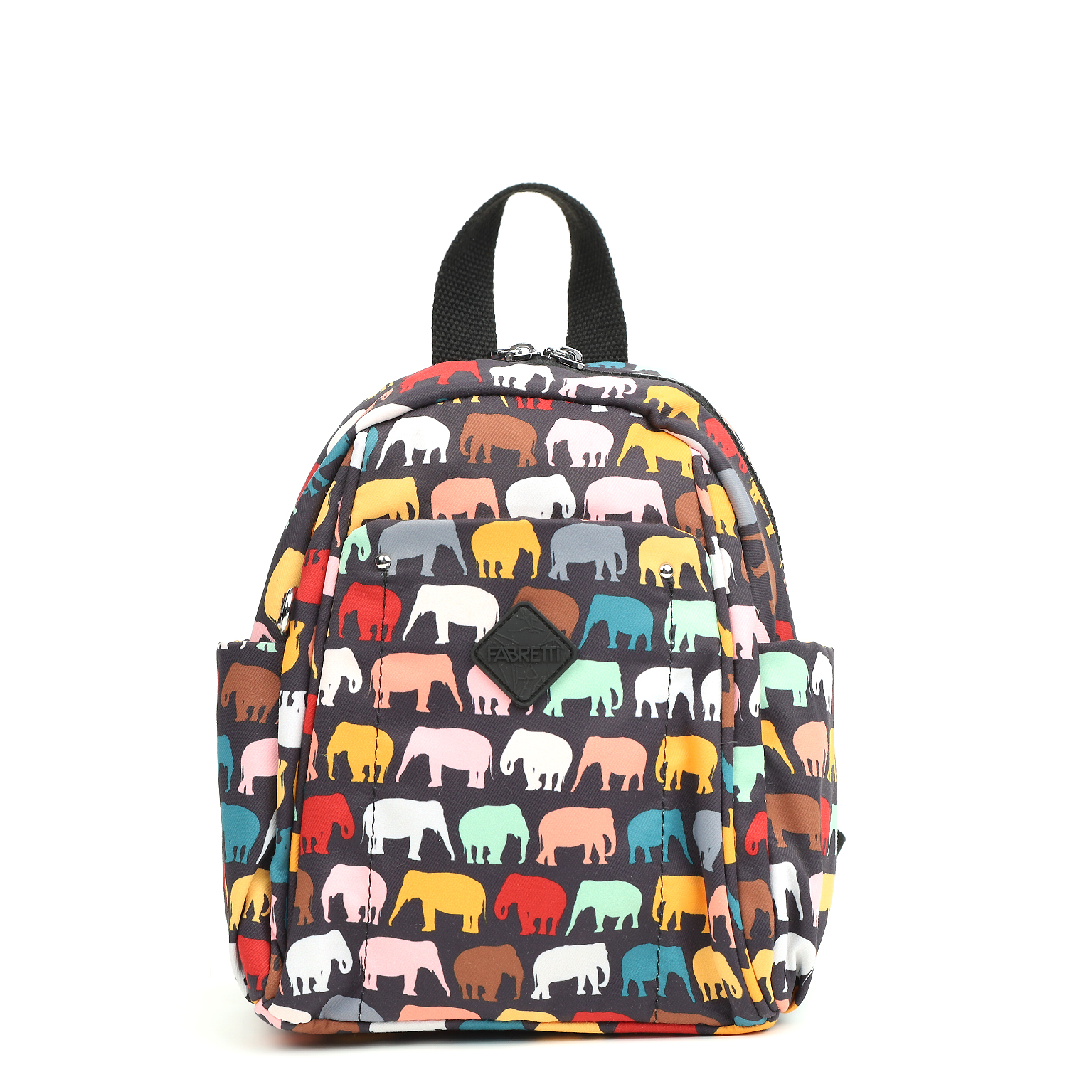 Текстильный дорожный рюкзак итальянского бренда FABRETTI в черном цвете с принтами в виде слонов идеально подойдет тем, кто ведет активный образ жизни, учится и предпочитает путешествовать налегке. Он выполнен из высокотехнологичного влагостойкого полиэстера гладкой фактуры, практичен и прост в уходе. Основное отделение закрывается на полукруглую молнию с двумя бегунками. Внутри два открытых кармана, один карман на молнии и ремешок с карабином. На лицевой стороне расположен вместительный карман на магните, украшенный пришивным логотипом. По бокам предусмотрены небольшие открытые карманы. На спинке карман быстрого доступа на молнии. Текстильные лямки регулируются по длине (ширина - 3 см). Сверху есть ручка для ношения в руке.