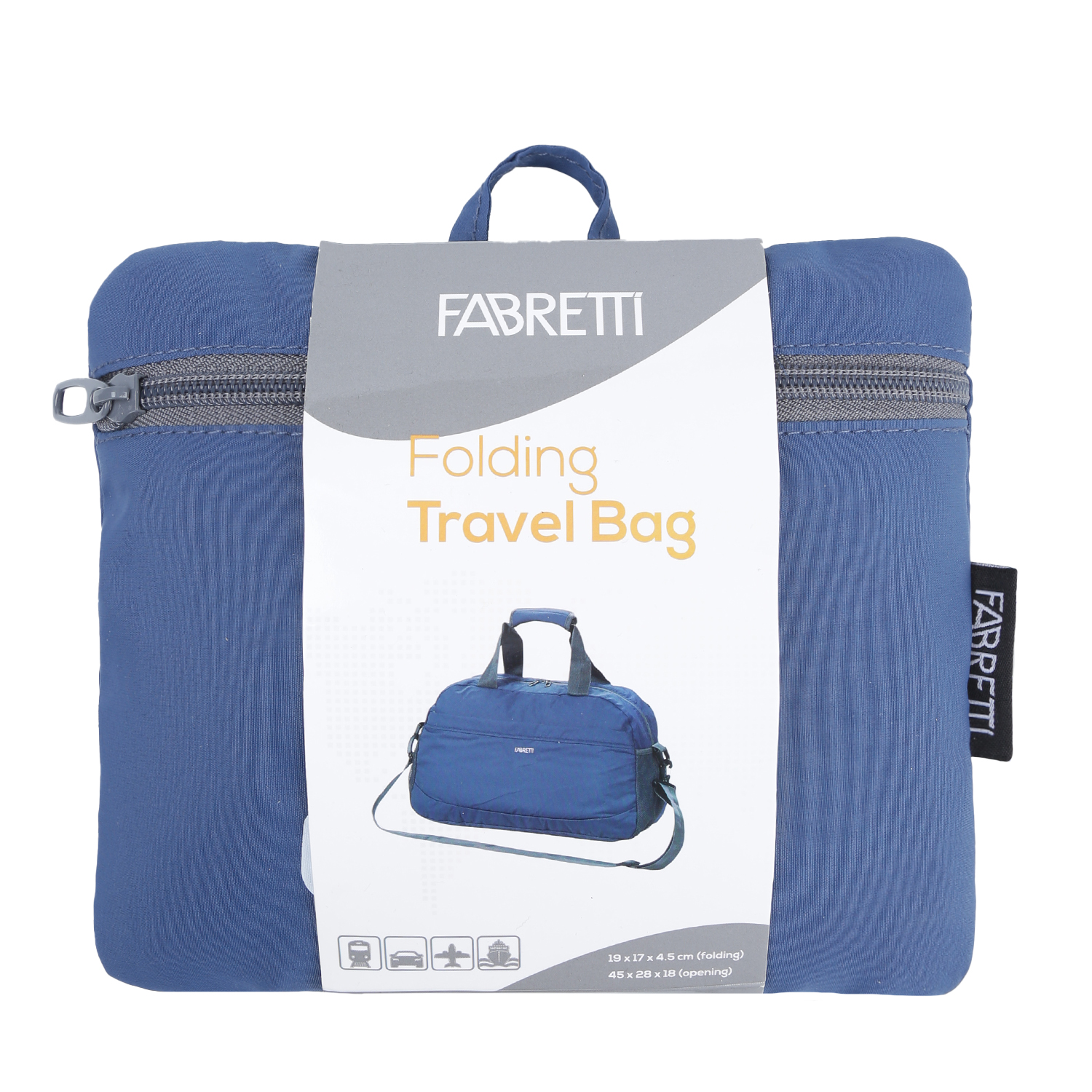 Складная дорожная сумка итальянского бренда FABRETTI в синем оттенке выполнена из технологичной синтетической ткани. Легкий и прочный материал позволяет упаковать вместительную сумку в маленький чехол на молнии, который практически не занимает места в багаже.