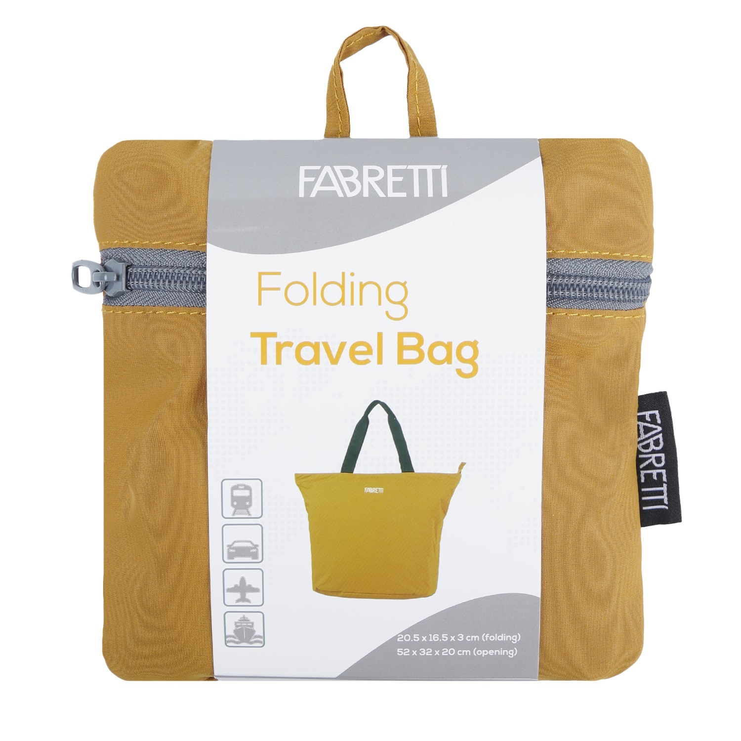 Складная дорожная сумка итальянского бренда FABRETTI в горчичном оттенке выполнена из технологичной синтетической ткани. Легкий и прочный материал позволяет упаковать вместительную сумку в маленький чехол на молнии, который практически не занимает места в багаже.