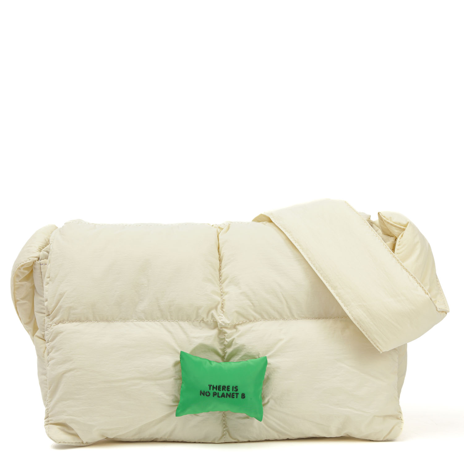 Объемная стеганая сумка на плечо FABRETTI в бежевом оттенке выполнена из высокотехнологичного влагостойкого нейлона. Он практичен и прост в уходе. Основное отделение закрывается клапаном на двух магнитных кнопках. Внутри 2 боковых кармана: открытый и на молнии. Клапан декорирован оригинальной деталью в виде мягкой подушки с надписью. Плечевой ремень позволяет комфортно носить изделие на плече, ширина - 6 см.