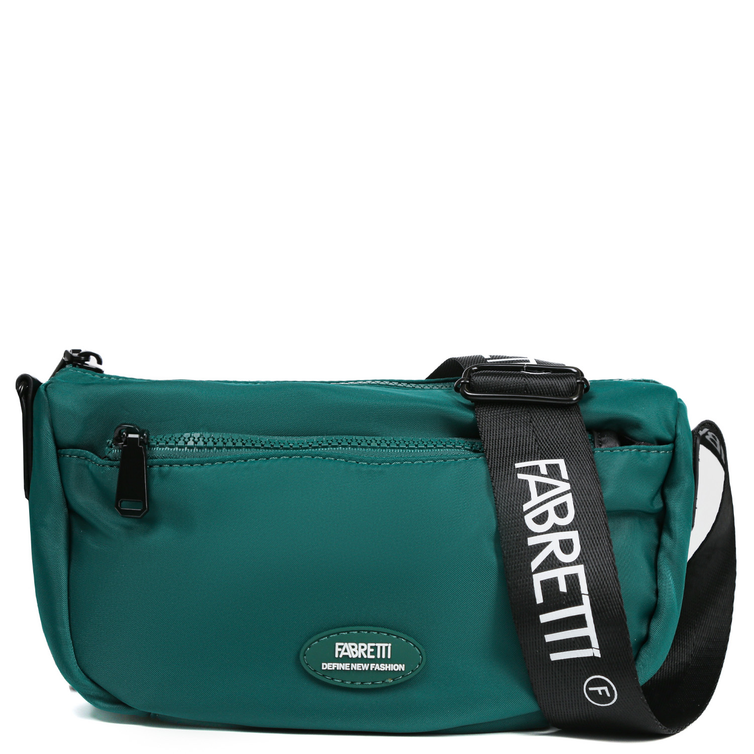 Текстильная сумка через плечо FABRETTI в зеленом оттенке выполнена из высокотехнологичного влагостойкого нейлона гладкой фактуры. Он долговечен, практичен и прост в уходе. Основное отделение закрывается на молнию. Внутри 2 кармана для мелочей: открытый и на молнии. На лицевой стороне есть карман на молнии. На тыльной стороне предусмотрен карман быстрого доступа на молнии. Плечевой ремень декорирован надписью с логотипом бренда, регулируется по длине, ширина - 4 см.