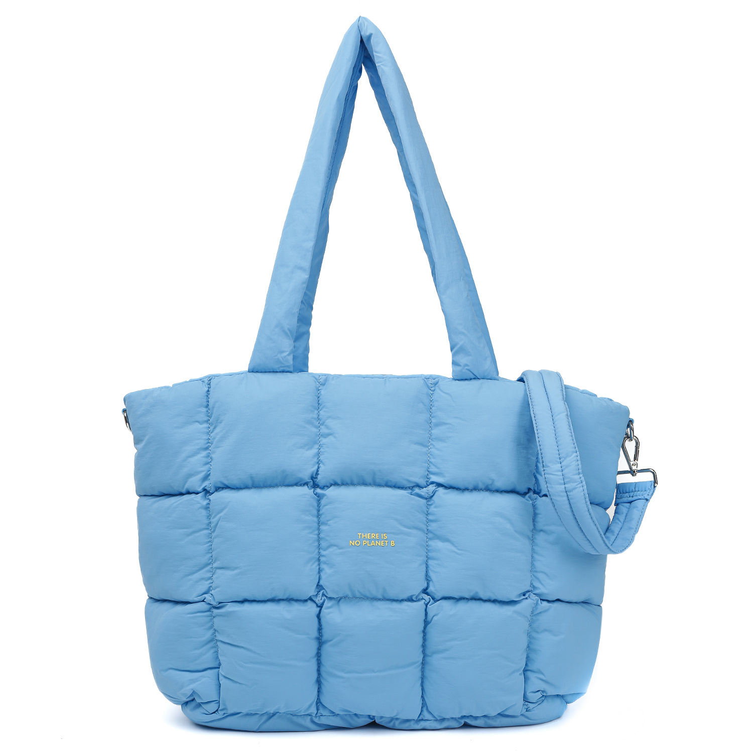 Объемная стеганая сумка FABRETTI в голубом оттенке выполнена из высокотехнологичного влагостойкого нейлона. Он практичен и прост в уходе. Основное отделение закрывается на молнию. Внутри 2 боковых кармана: открытый и на молнии. Две мягкие ручки средней длины позволяют удобно носить аксессуар в руке или на плече. В комплекте идет съемный плечевой ремень, регулируемый по длине; ширина - 3,5 см.