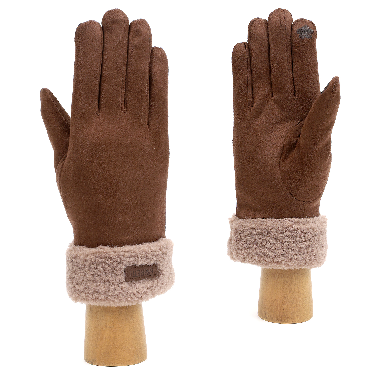 Уютные женские перчатки итальянского бренда FABRETTI из экозамши теплого коричневого оттенка. Внутри модель дополнена теплым экомехом.