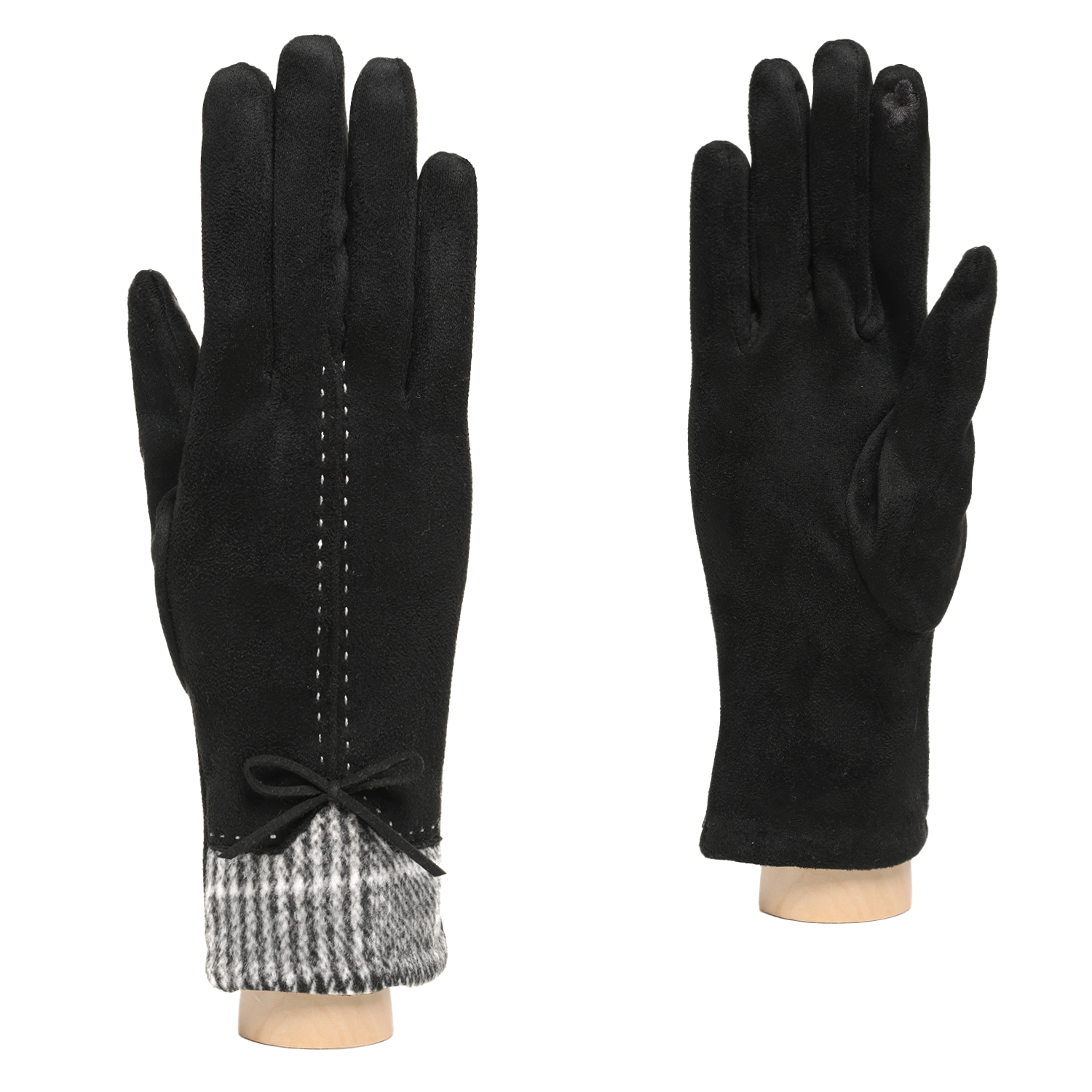 Современные женские перчатки итальянского бренда FABRETTI из экозамши черного цвета. Изнаночная сторона дополнена коротким, но теплым экомехом.